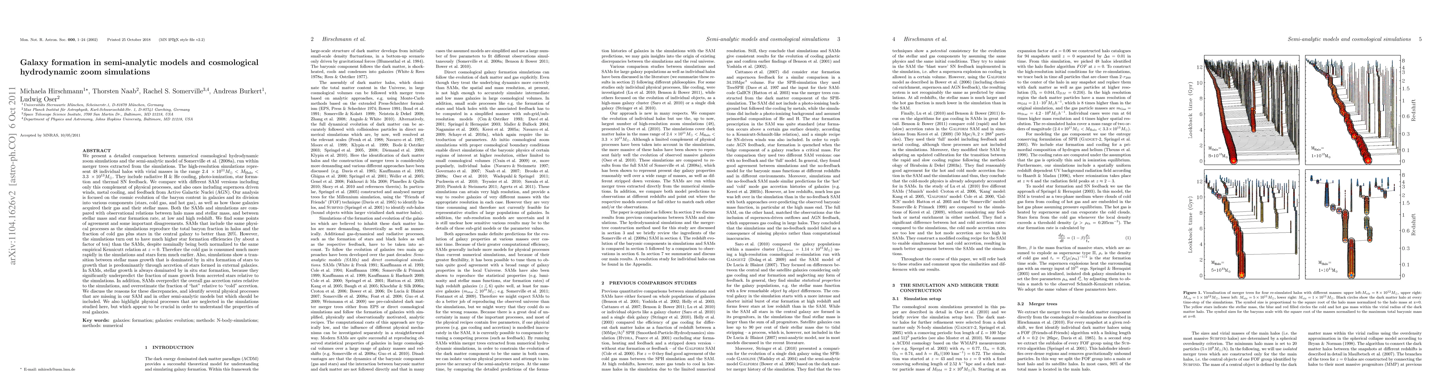 This paper compares semi-analytic models (SAMs) and high-resolution cosmological hydrodynamic zoom simulations, focusing on galaxy formation and the evolution of baryonic content. Simulations show higher star formation efficiencies and a shift from in situ to accretion-dominated star formation, while SAMs overpredict gas accretion rates and always rely on in situ star formation. Discrepancies highlight missing processes in SAMs and neglected factors in simulations.