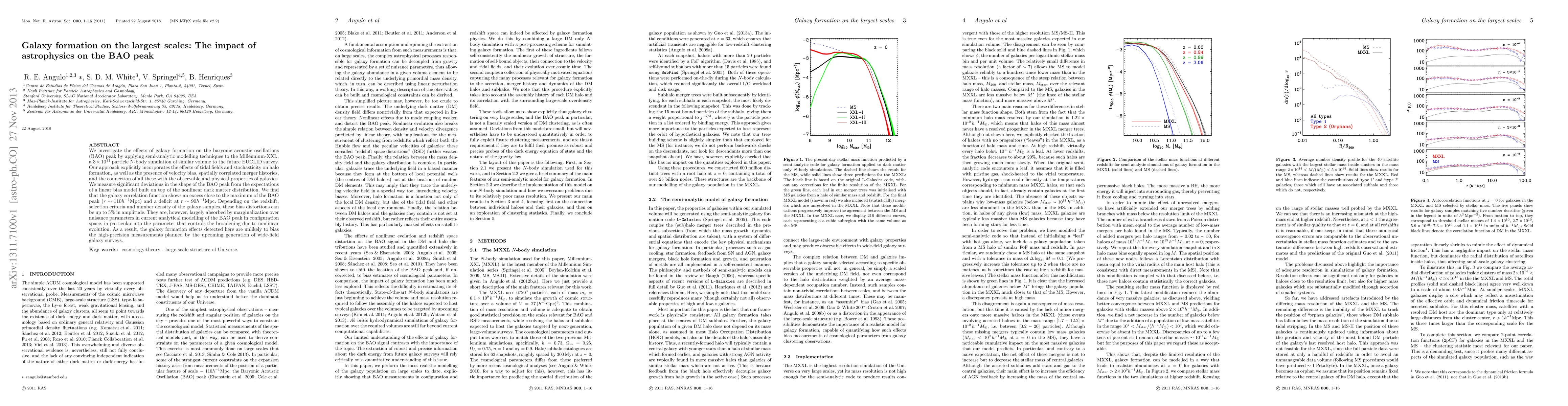 We investigate the effects of galaxy formation on the baryonic acoustic oscillations (BAO) peak by applying semi-analytic modelling techniques to the Millennium-XXL, a $3 \times 10^{11}$ particle N-body simulation of similar volume to the future EUCLID survey. Our approach explicitly incorporates the effects of tidal fields and stochasticity on halo formation, as well as the presence of velocity bias, spatially correlated merger histories, and the connection of all these with the observable and physical properties of galaxies. We measure significant deviations in the shape of the BAO peak from the expectations of a linear bias model built on top of the nonlinear dark matter distribution. We find that the galaxy correlation function shows an excess close to the maximum of the BAO peak ($r\sim110 Mpc/h$) and a deficit at $r\sim90 Mpc/h$. Depending on the redshift, selection criteria and number density of the galaxy samples, these bias distortions can be up to 5% in amplitude. They are, however, largely absorbed by marginalization over nuisance parameters in current analytical modelling of the BAO peak in configuration space, in particular into the parameter that controls the broadening due to nonlinear evolution. As a result, the galaxy formation effects detected here are unlikely to bias the high-precision measurements planned by the upcoming generation of wide-field galaxy surveys.