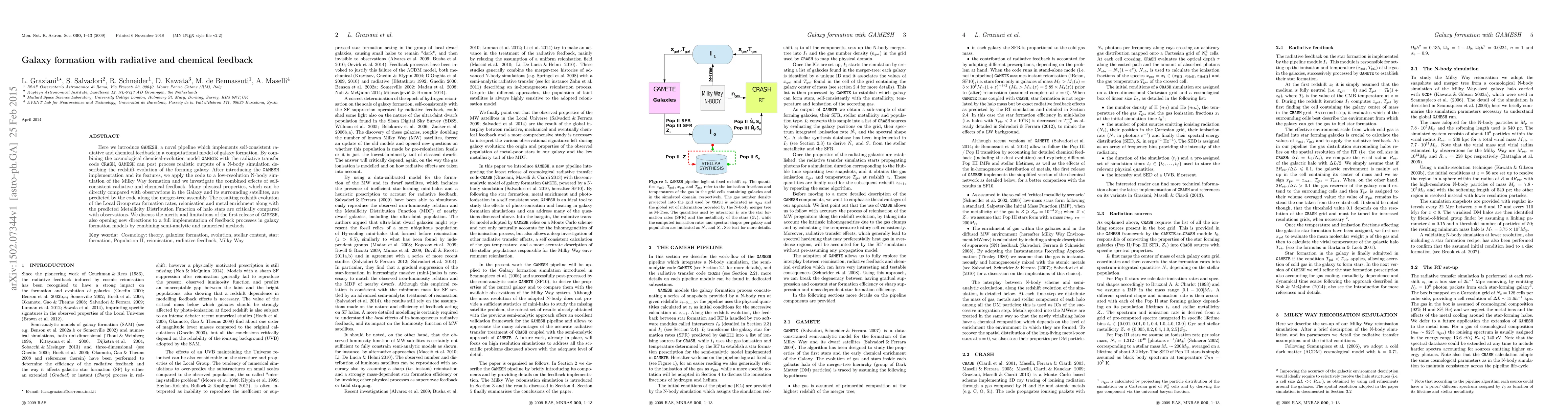 Here we introduce GAMESH, a novel pipeline which implements self-consistent radiative and chemical feedback in a computational model of galaxy formation. By combining the cosmological chemical-evolution model GAMETE with the radiative transfer code CRASH, GAMESH can post process realistic outputs of a N-body simulation describing the redshift evolution of the forming galaxy. After introducing the GAMESH implementation and its features, we apply the code to a low-resolution N-body simulation of the Milky Way formation and we investigate the combined effects of self-consistent radiative and chemical feedback. Many physical properties, which can be directly compared with observations in the Galaxy and its surrounding satellites, are predicted by the code along the merger-tree assembly. The resulting redshift evolution of the Local Group star formation rates, reionisation and metal enrichment along with the predicted Metallicity Distribution Function of halo stars are critically compared with observations. We discuss the merits and limitations of the first release of GAMESH, also opening new directions to a full implementation of feedback processes in galaxy formation models by combining semi-analytic and numerical methods.