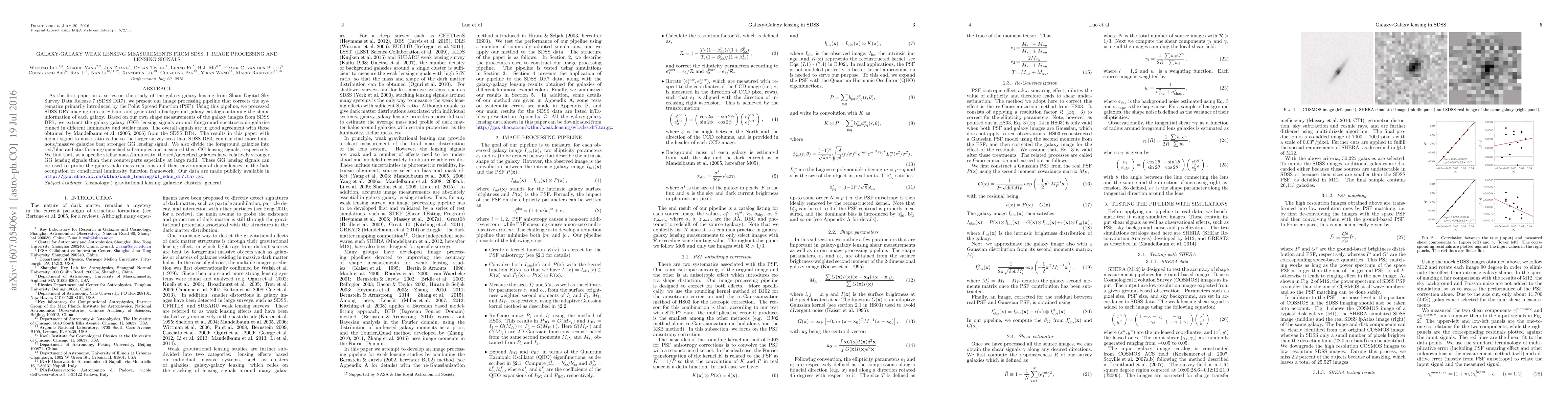 This paper details an image processing pipeline for SDSS DR7 data to correct systematics from the PSF, generating a galaxy catalog with shape information. The study extracts galaxy-galaxy lensing signals around foreground galaxies, confirming stronger lensing signals from more luminous/massive galaxies and finding that red/quenched galaxies exhibit stronger signals at large radii, useful for probing galaxy-halo mass relations.