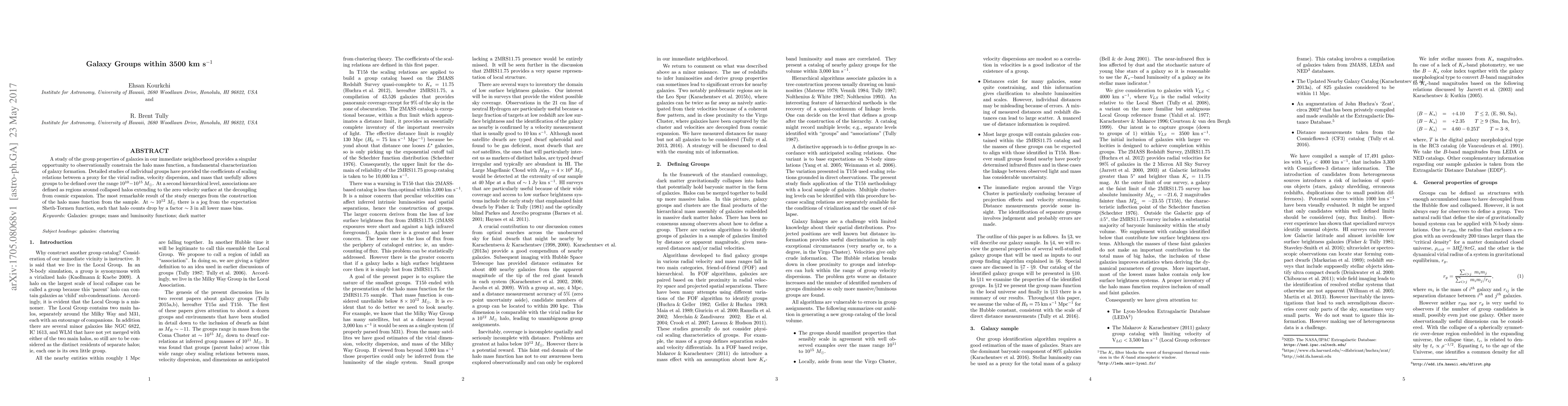 A study of the group properties of galaxies in our immediate neighborhood provides a singular opportunity to observationally constrain the halo mass function, a fundamental characterization of galaxy formation. Detailed studies of individual groups have provided the coefficients of scaling relations between a proxy for the virial radius, velocity dispersion, and mass that usefully allows groups to be defined over the range $10^{10} - 10^{15}$ $M_\odot$. At a second hierarchical level, associations are defined as regions around collapsed halos extending to the zero velocity surface at the decoupling from cosmic expansion. The most remarkable result of the study emerges from the construction of the halo mass function from the sample. At $\sim10^{12}$ $M_\odot$ there is a jog from the expectation Sheth-Tormen function, such that halo counts drop by a factor $\sim 3$ in all lower mass bins.