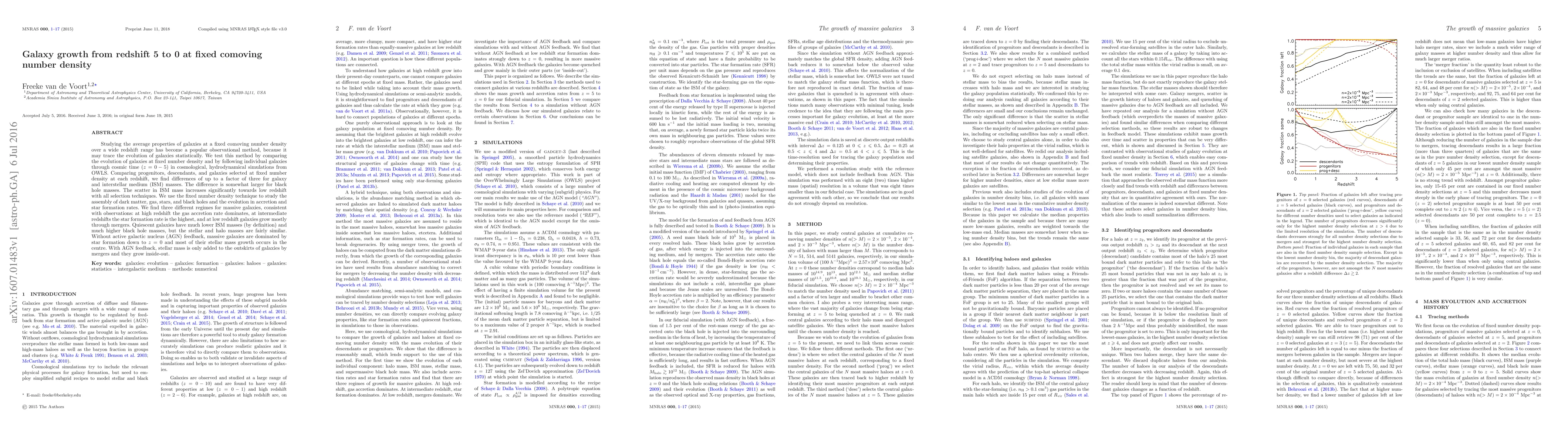 This paper explores galaxy evolution from redshift 5 to 0 using fixed comoving number density and individual galaxy tracking in cosmological simulations. It finds significant differences in galaxy and ISM masses, with AGN feedback influencing stellar mass growth from inside-out.