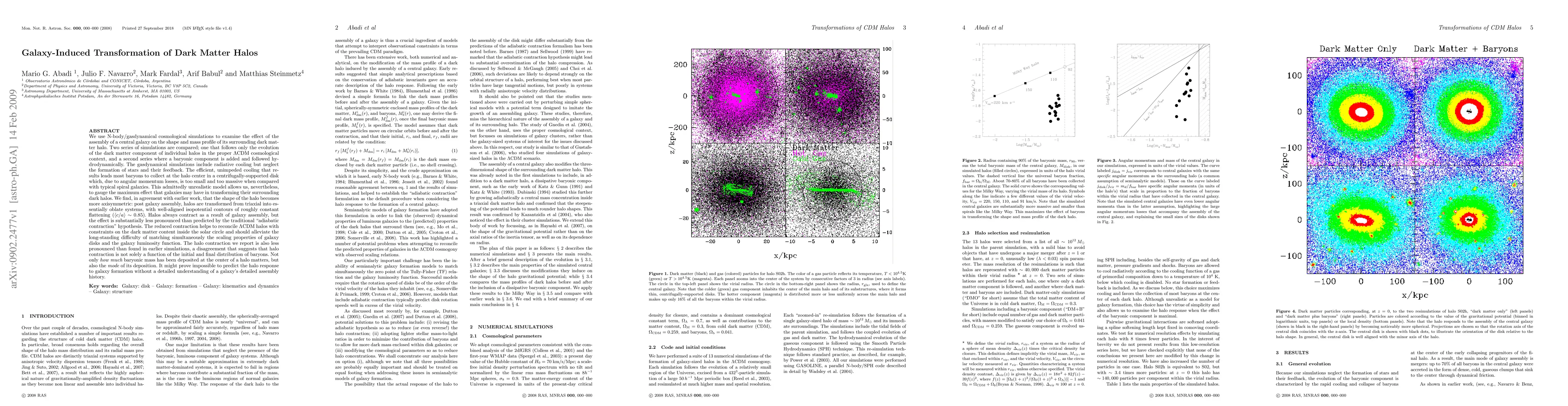 This study uses cosmological simulations to explore how the formation of a central galaxy affects the shape and mass profile of its dark matter halo. The simulations show that galaxy assembly transforms halos from triaxial to oblate systems and results in less pronounced halo contraction than predicted, suggesting that the mode of baryonic mass deposition is crucial in determining halo response.