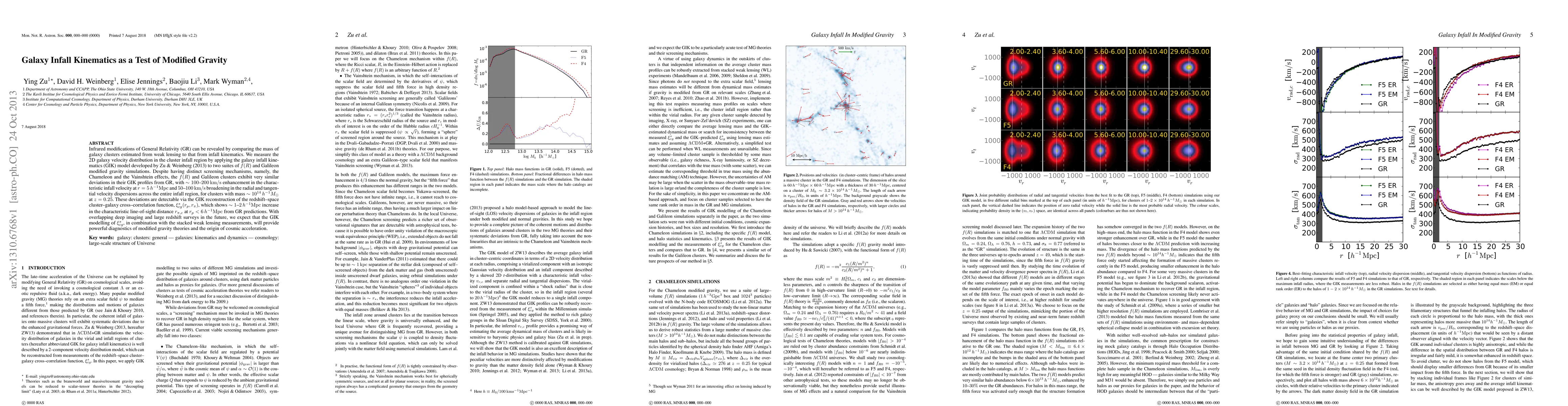 This paper investigates the galaxy infall kinematics (GIK) as a probe for modified gravity theories, comparing f(R) and Galileon models against General Relativity. The study finds similar deviations in velocity profiles and velocity dispersions, suggesting detectable enhancements and broadenings that could indicate modified gravity effects.