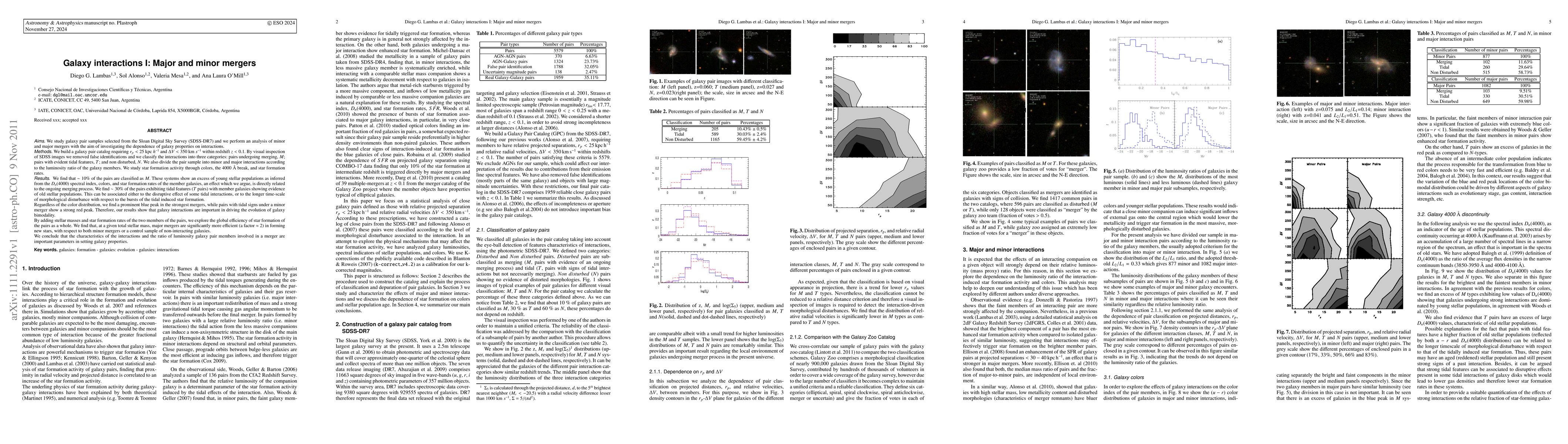 This paper investigates galaxy interactions from the Sloan Digital Sky Survey, classifying pairs into merging (M), tidal feature (T), and non-disturbed (N) categories. Major mergers show increased star formation activity, while minor mergers exhibit tidal features. Major mergers are twice as efficient in forming new stars compared to minor mergers or non-interacting galaxies, highlighting the role of interactions in galaxy evolution.