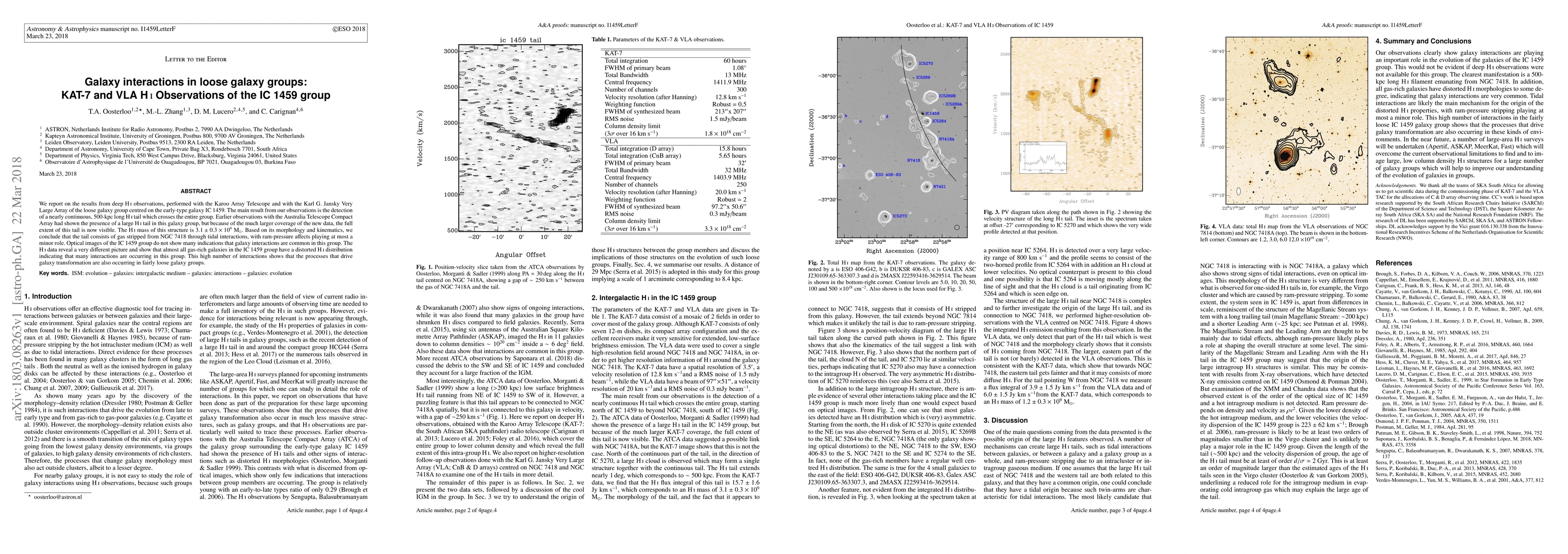Deep HI observations of the IC 1459 galaxy group reveal a 500-kpc long HI tail formed from gas stripped from NGC 7418, indicating significant galaxy interactions despite sparse optical evidence. The findings suggest that galaxy transformation processes are active even in loose galaxy groups.