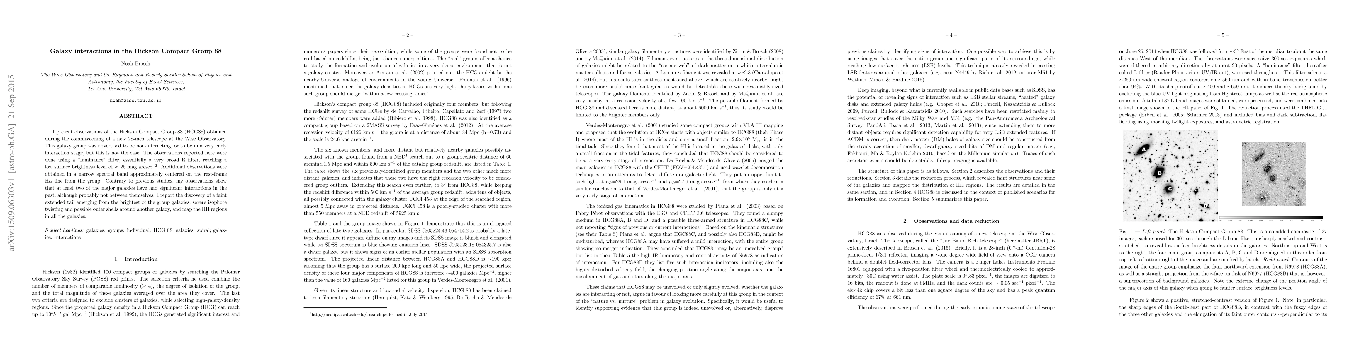 I present observations of the Hickson Compact Group 88 (HCG88) obtained during the commissioning of a new 28-inch telescope at the Wise Observatory. This galaxy group was advertised to be non-interacting, or to be in a very early interaction stage, but this is not the case. The observations reported here were done using a "luminance" filter, essentially a very broad R filter, reaching a low surface brightness level of about 26 mag per square arcsec. Additional observations were obtained in a narrow spectral band approximately centered on the rest-frame H-alpha line from the group. Contrary to previous studies, my observations show that at least two of the major galaxies have had significant interactions in the past, although probably not between themselves. I report the discovery of a faint extended tail emerging from the brightest of the group galaxies, severe isophote twisting and possible outer shells around another galaxy, and map the HII regions in all the galaxies.