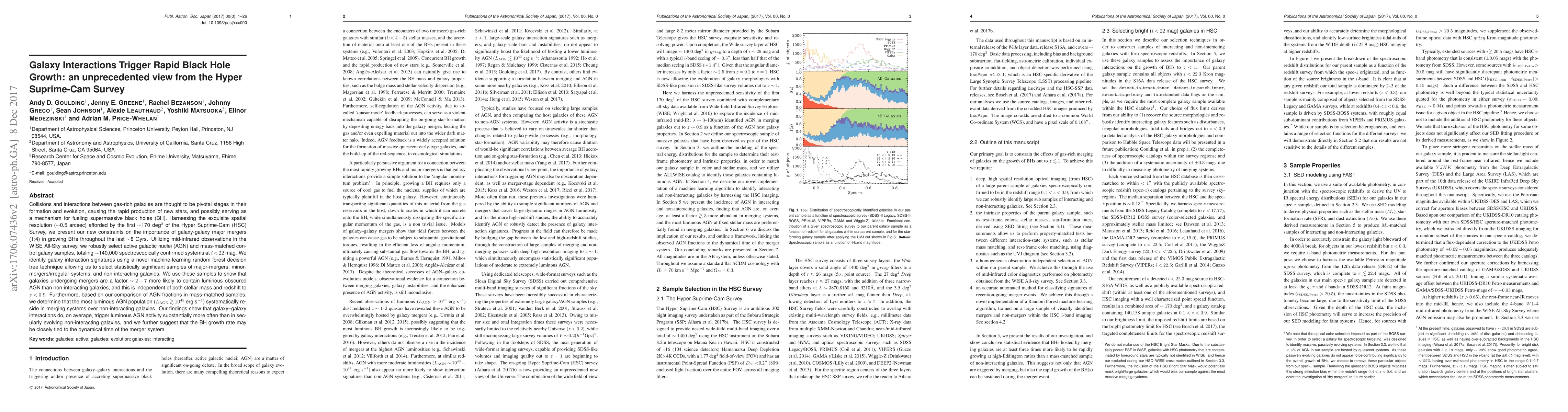 This paper uses the Hyper Suprime-Cam Survey to investigate the role of galaxy interactions in black hole growth, finding that major mergers trigger rapid black hole growth by fueling luminous active galactic nuclei, independent of stellar mass and redshift. The study employs machine learning to identify merger signatures and concludes that merging galaxies are more likely to host luminous obscured AGN than non-interacting ones.