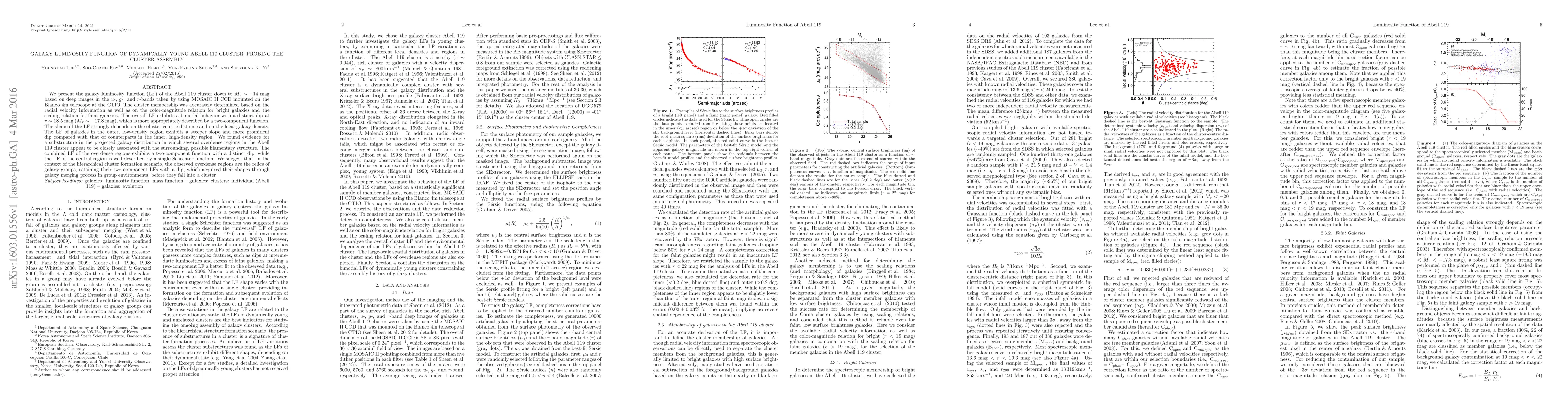 The Abell 119 cluster shows a bimodal galaxy luminosity function with a dip at $r ext{ mag}$, influenced by the local density and cluster-centric distance, suggesting substructure in the cluster and relics of galaxy groups.