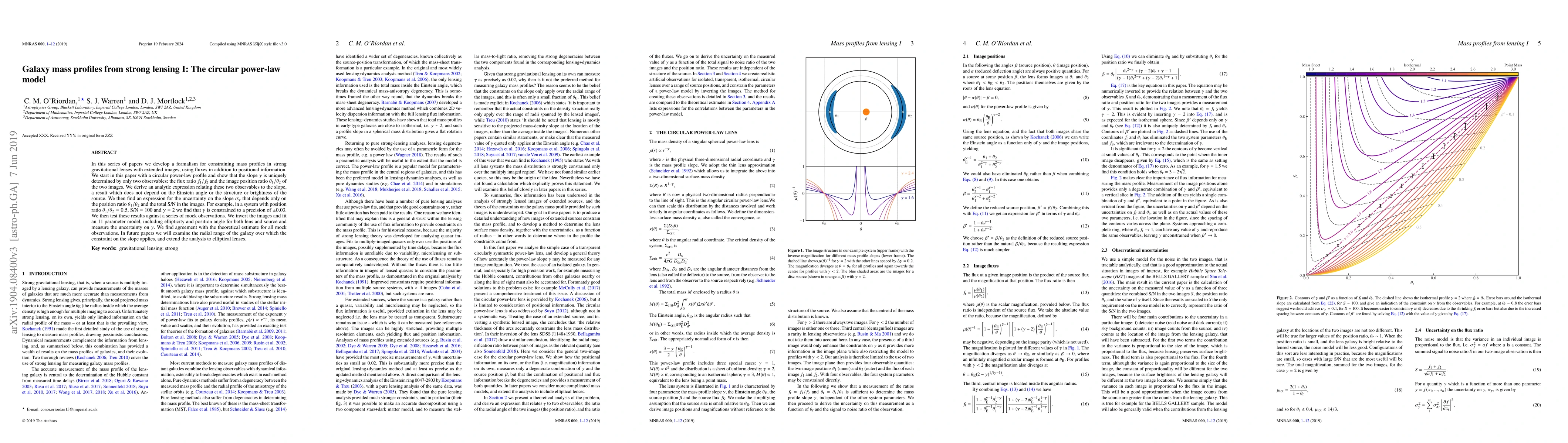This paper develops a method to determine mass profiles in strong gravitational lenses using the circular power-law model, showing that the slope γ is uniquely determined by the flux ratio and image position ratio. The derived analytic expression for the slope is independent of the Einstein angle or source brightness, and the uncertainty on the slope is shown to depend only on the position ratio and image signal-to-noise ratio.
