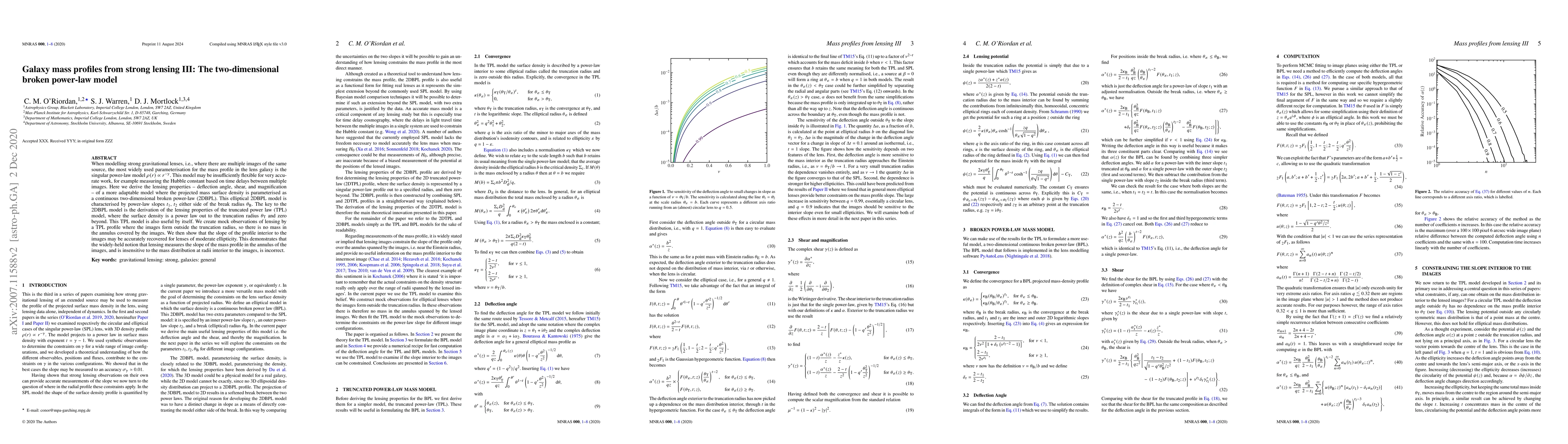 When modelling strong gravitational lenses, i.e., where there are multiple images of the same source, the most widely used parameterisation for the mass profile in the lens galaxy is the singular power-law model $\rho(r)\propto r^{-\gamma}$. This model may be insufficiently flexible for very accurate work, for example measuring the Hubble constant based on time delays between multiple images. Here we derive the lensing properties - deflection angle, shear, and magnification - of a more adaptable model where the projected mass surface density is parameterised as a continuous two-dimensional broken power-law (2DBPL). This elliptical 2DBPL model is characterised by power-law slopes $t_1$, $t_2$ either side of the break radius $\theta_\mathrm{B}$. The key to the 2DBPL model is the derivation of the lensing properties of the truncated power law (TPL) model, where the surface density is a power law out to the truncation radius $\theta_\mathrm{T}$ and zero beyond. This TPL model is also useful by itself. We create mock observations of lensing by a TPL profile where the images form outside the truncation radius, so there is no mass in the annulus covered by the images. We then show that the slope of the profile interior to the images may be accurately recovered for lenses of moderate ellipticity. This demonstrates that the widely-held notion that lensing measures the slope of the mass profile in the annulus of the images, and is insensitive to the mass distribution at radii interior to the images, is incorrect.