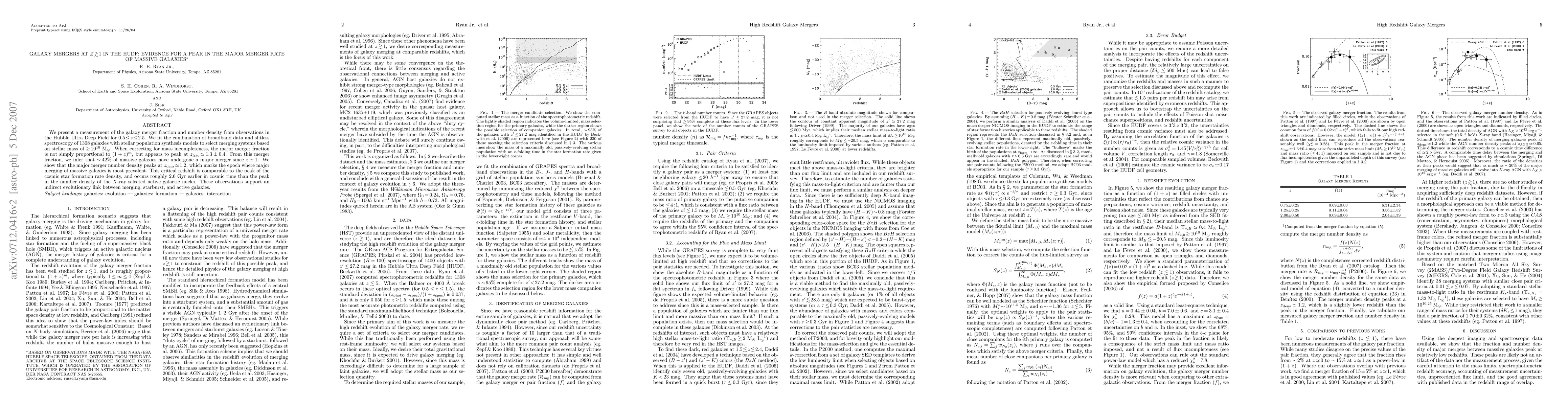 A study of galaxy mergers at z>1 in the Hubble Ultra Deep Field found that massive galaxies underwent a peak in major mergers around 2.6 billion years ago, with approximately 42% of massive galaxies experiencing this process since z~1.