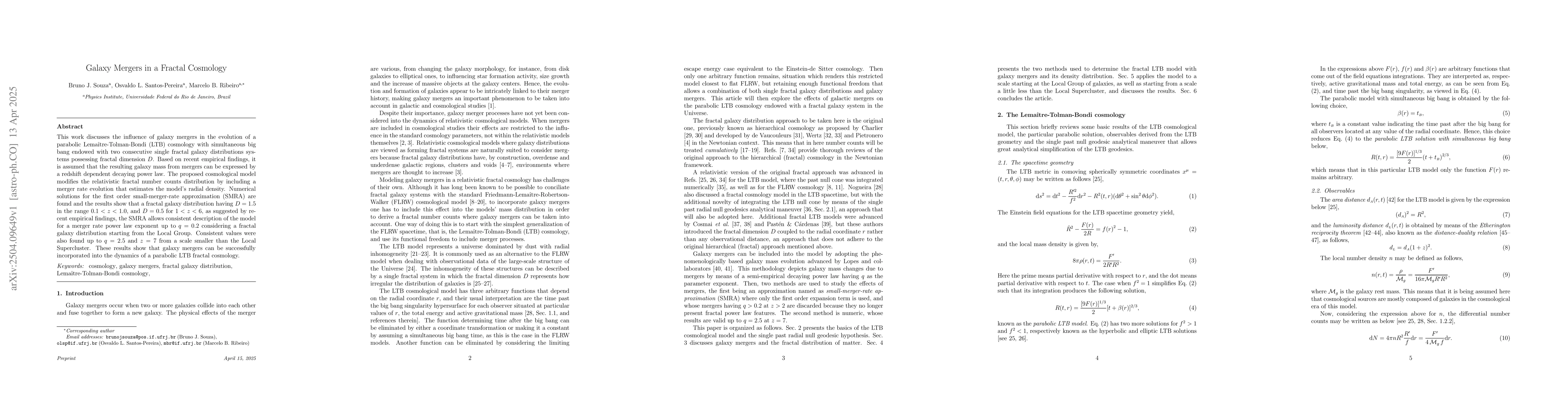 The research employs a parabolic Lema\^{\i}tre-Tolman-Bondi (LTB) cosmology with fractal galaxy distributions, incorporating a redshift-dependent decaying power law for galaxy merger mass and a small-merger-rate approximation (SMRA) to estimate radial density.