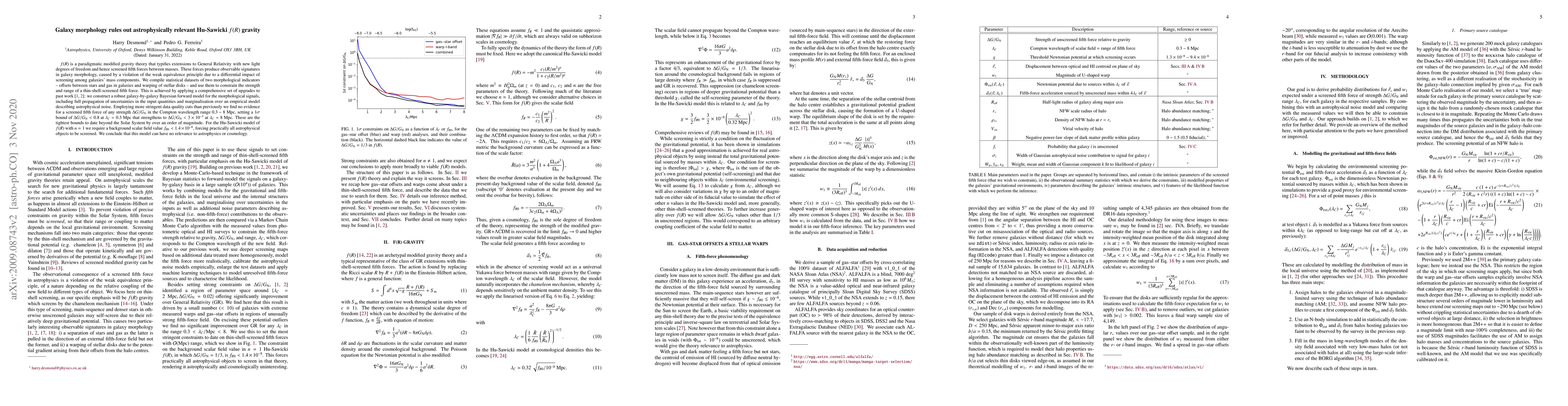 $f(R)$ is a paradigmatic modified gravity theory that typifies extensions to General Relativity with new light degrees of freedom and hence screened fifth forces between masses. These forces produce observable signatures in galaxy morphology, caused by a violation of the weak equivalence principle due to a differential impact of screening among galaxies' mass components. We compile statistical datasets of two morphological indicators -- offsets between stars and gas in galaxies and warping of stellar disks -- and use them to constrain the strength and range of a thin-shell-screened fifth force. This is achieved by applying a comprehensive set of upgrades to past work (Desmond et al 2018a,b): we construct a robust galaxy-by-galaxy Bayesian forward model for the morphological signals, including full propagation of uncertainties in the input quantities and marginalisation over an empirical model describing astrophysical noise. Employing more stringent data quality cuts than previously we find no evidence for a screened fifth force of any strength $\Delta G/G_\text{N}$ in the Compton wavelength range $0.3-8$ Mpc, setting a $1\sigma$ bound of $\Delta G/G_\text{N}<0.8$ at $\lambda_C=0.3$ Mpc that strengthens to $\Delta G/G_\text{N}<3\times10^{-5}$ at $\lambda_C=8$ Mpc. These are the tightest bounds to date beyond the Solar System by over an order of magnitude. For the Hu-Sawicki model of $f(R)$ with $n=1$ we require a background scalar field value $f_{R0} < 1.4 \times 10^{-8}$, forcing practically all astrophysical objects to be screened. We conclude that this model can have no relevance to astrophysics or cosmology.