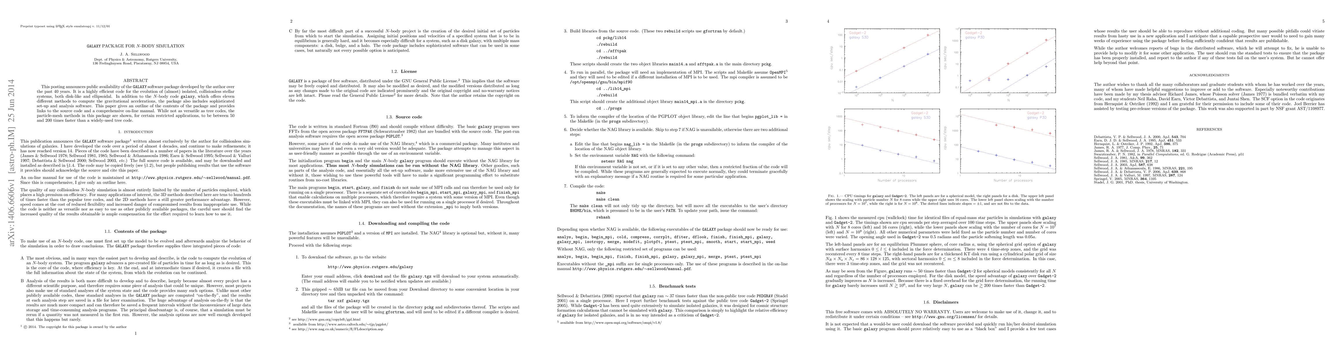 This posting announces public availability of the GALAXY software package developed by the author over the past 40 years. It is a highly efficient code for the evolution of (almost) isolated, collisionless stellar systems, both disk-like and ellipsoidal. In addition to the N-body code galaxy, which offers eleven different methods to compute the gravitational accelerations, the package also includes sophisticated set-up and analysis software. This paper gives an outline of the contents of the package and provides links to the source code and a comprehensive on-line manual. While not as versatile as tree codes, the particle-mesh methods in this package are shown, for certain restricted applications, to be between 50 and 200 times faster than a widely-used tree code.