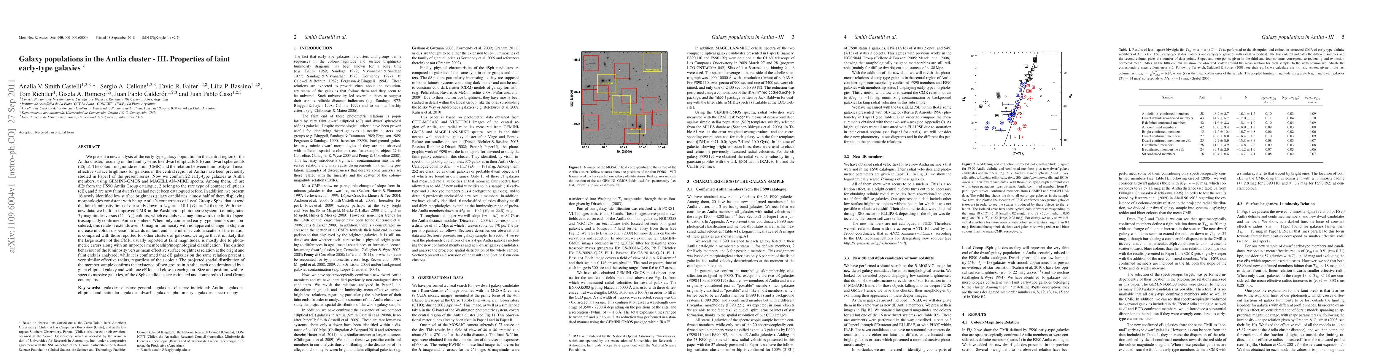 (Abridge) We present a new analysis of the early-type galaxy population in the central region of the Antlia cluster, focusing on the faint systems like dwarf ellipticals (dE) and dwarf spheroidals (dSph). We confirm 22 early-type galaxies as Antlia members, using GEMINI-GMOS and MAGELLAN-MIKE spectra. Among them, 2 belong to the rare type of compact ellipticals (cE), and 5 are new faint dwarfs that had never been catalogued before. In addition, we present 16 newly identified low surface brightness galaxy candidates, almost half of them displaying morphologies consistent with being Antlia's counterparts of Local Group dSphs, that extend the faint luminosity limit of our study down to MB = -10.1 (BT = 22.6) mag. We built an improved CMR in the Washington photometric system, i.e. integrated T1 magnitudes versus (C - T1) colours, which extends \sim 4 mag faintwards the limit of spectroscopically confirmed Antlia members. When only confirmed early-type members are considered, this relation extends over 10 mag in luminosity with no apparent change in slope or increase in colour dispersion towards its faint end. The intrinsic colour scatter of the relation is compared with those reported for other clusters of galaxies; we argue that it is likely that the large scatter of the CMR, usually reported at faint magnitudes, is mostly due to photometric errors along with an improper membership/morphological classification. The distinct behaviour of the luminosity versus mean effective surface brightness relation at the bright and faint ends is analyzed, while it is confirmed that dE galaxies on the same relation present a very similar effective radius, regardless of their colour. The projected spatial distribution of the member sample confirms the existence of two groups in Antlia, each one dominated by a giant elliptical galaxy and with one cE located close to each giant.