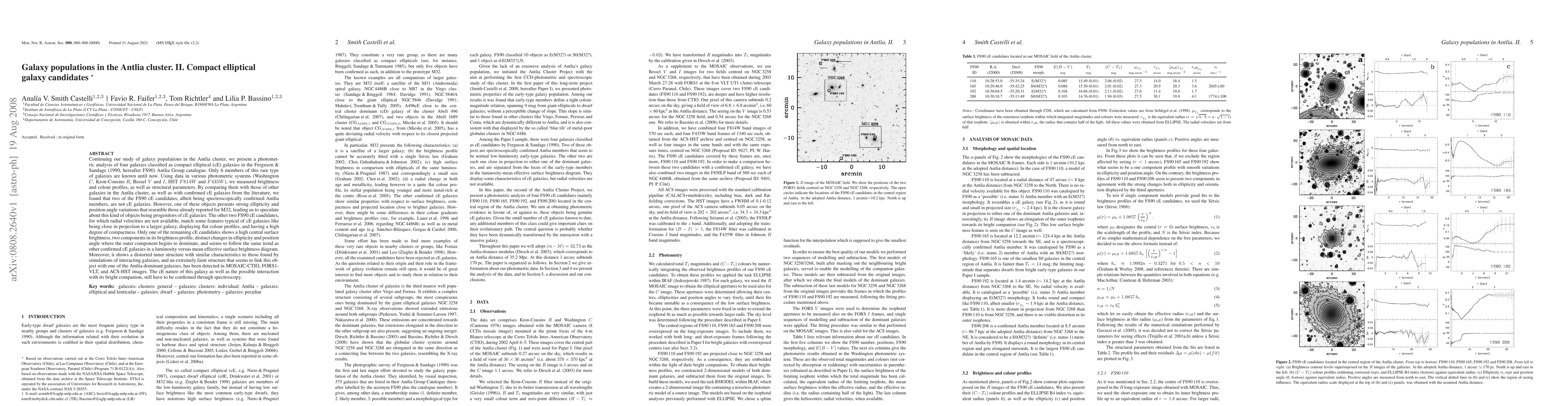 Researchers analyzed four compact elliptical galaxy candidates in the Antlia cluster, identifying one as a likely progenitor of cE galaxies and another with characteristics matching known cE galaxies, but also finding two that are not cE galaxies.