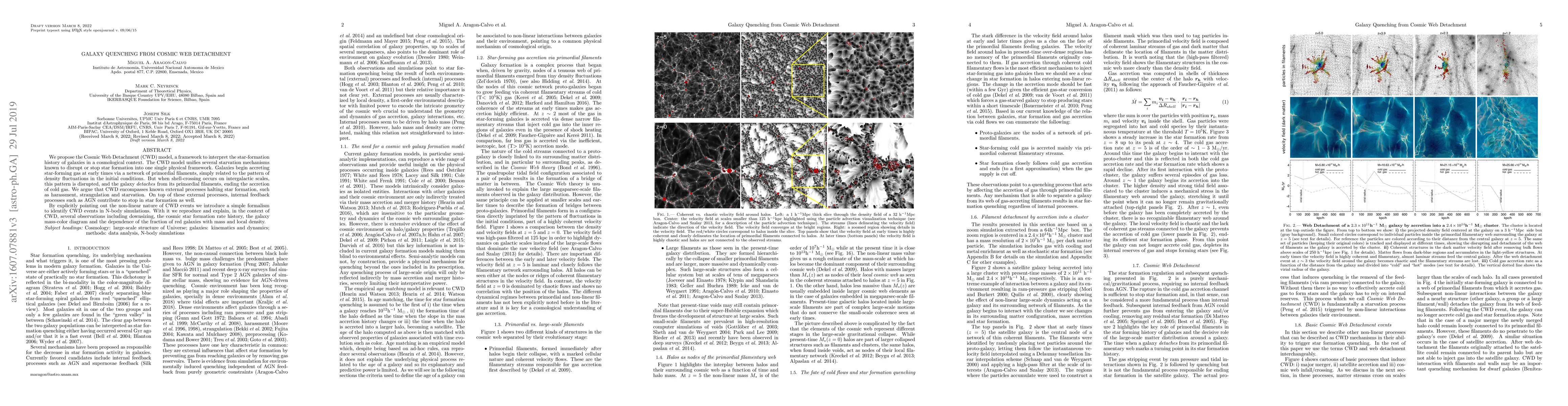 We propose the Cosmic Web Detachment (CWD) model, a framework to interpret the star-formation history of galaxies in a cosmological context. The CWD model unifies several starvation mechanisms known to disrupt or stop star formation into one single physical framework. Galaxies begin accreting star-forming gas at early times via a network of primordial filaments, simply related to the pattern of density fluctuations in the initial conditions. But when shell-crossing occurs on intergalactic scales, this pattern is disrupted, and the galaxy detaches from its primordial filaments, ending the accretion of cold gas. We argue that CWD encompasses known external processes halting star formation, such as harassment, strangulation and starvation. On top of these external processes, internal feedback processes such as AGN contribute to stop in star formation as well. By explicitly pointing out the non-linear nature of CWD events we introduce a simple formalism to identify CWD events in N-body simulations. With it we reproduce and explain, in the context of CWD, several observations including downsizing, the cosmic star formation rate history, the galaxy mass-color diagram and the dependence of the fraction of red galaxies with mass and local density.