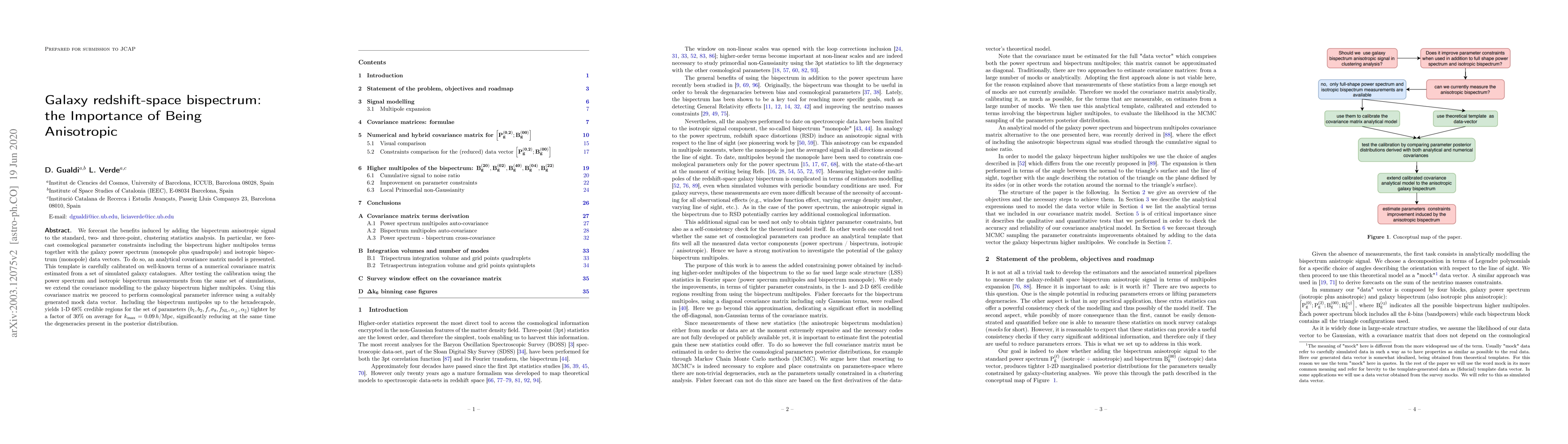 We forecast the benefits induced by adding the bispectrum anisotropic signal to the standard, two- and three-point, clustering statistics analysis. In particular, we forecast cosmological parameter constraints including the bispectrum higher multipoles terms together with the galaxy power spectrum (monopole plus quadrupole) and isotropic bispectrum (monopole) data vectors. To do so, an analytical covariance matrix model is presented. This template is carefully calibrated on well-known terms of a numerical covariance matrix estimated from a set of simulated galaxy catalogues. After testing the calibration using the power spectrum and isotropic bispectrum measurements from the same set of simulations, we extend the covariance modelling to the galaxy bispectrum higher multipoles. Using this covariance matrix we proceed to perform cosmological parameter inference using a suitably generated mock data vector. Including the bispectrum mutipoles up to the hexadecapole, yields 1-D $68\%$ credible regions for the set of parameters $(b_1,b_2,f,\sigma_8,f_\mathrm{NL},\alpha_\perp, \alpha_\parallel)$ tighter by a factor of 30$\%$ on average for $k_\mathrm{max}=0.09\,h$/Mpc, significantly reducing at the same time the degeneracies present in the posterior distribution.