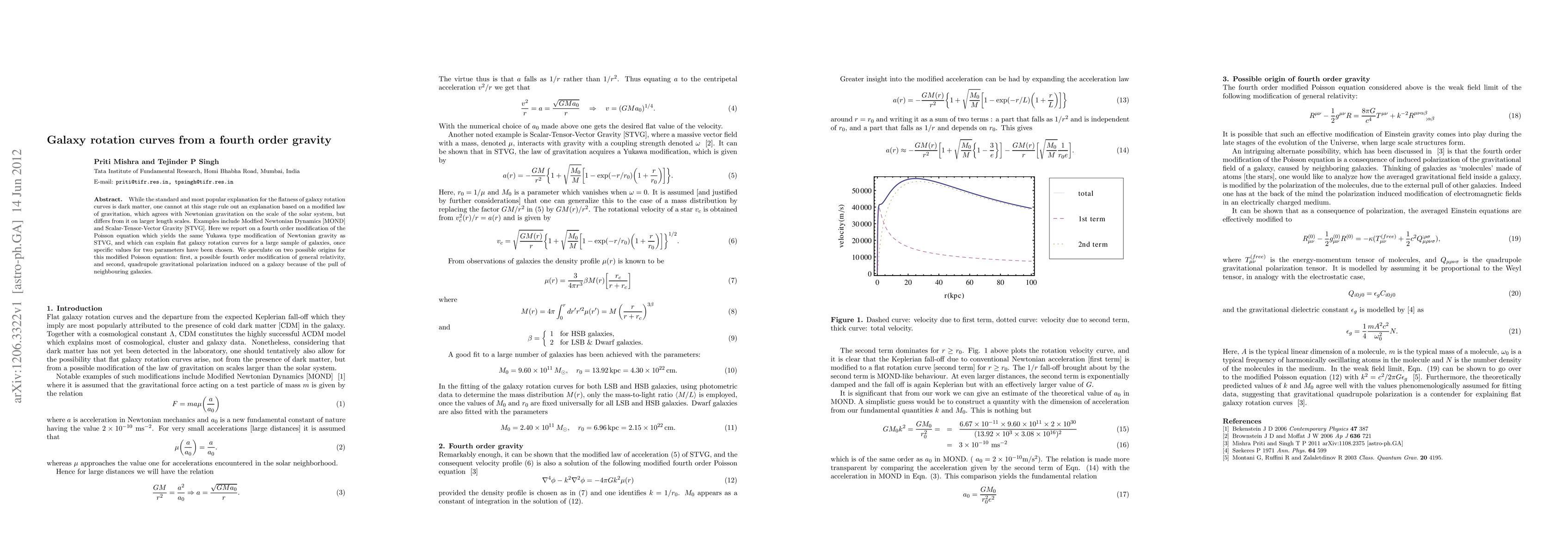 While the standard and most popular explanation for the flatness of galaxy rotation curves is dark matter, one cannot at this stage rule out an explanation based on a modified law of gravitation, which agrees with Newtonian gravitation on the scale of the solar system, but differs from it on larger length scales. Examples include Modfied Newtonian Dynamics [MOND] and Scalar-Tensor-Vector Gravity [STVG]. Here we report on a fourth order modification of the Poisson equation which yields the same Yukawa type modification of Newtonian gravity as STVG, and which can explain flat galaxy rotation curves for a large sample of galaxies, once specific values for two parameters have been chosen. We speculate on two possible origins for this modified Poisson equation: first, a possible fourth order modification of general relativity, and second, quadrupole gravitational polarization induced on a galaxy because of the pull of neighbouring galaxies.