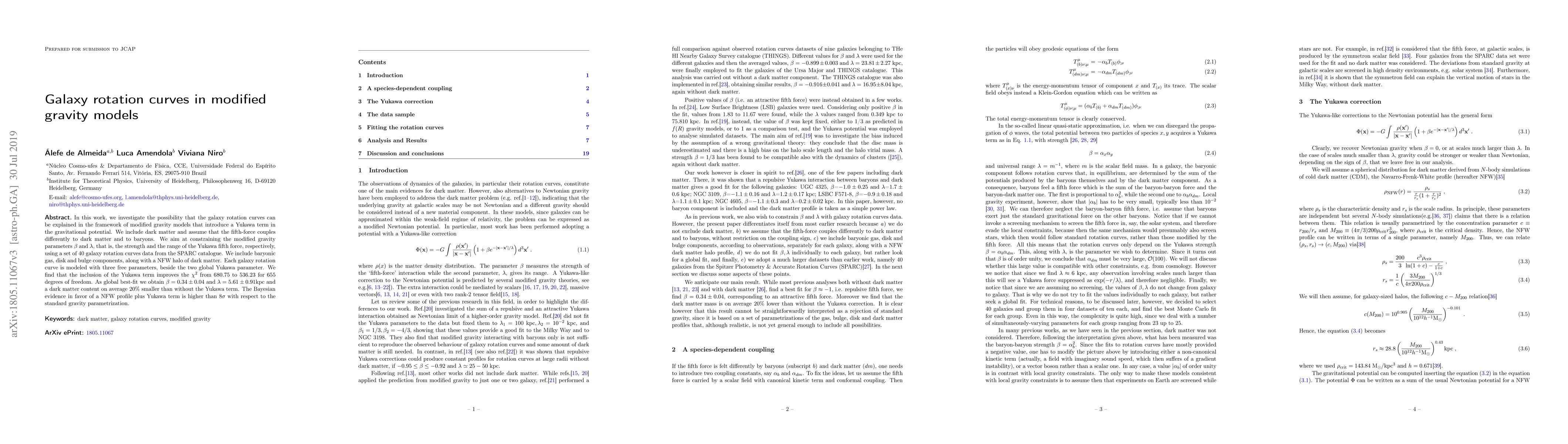 This paper explores galaxy rotation curves using modified gravity models with a Yukawa term, finding that it better fits the data than standard gravity, with best-fit parameters $\beta = 0.34\pm0.04$ and $\lambda = 5.61\pm0.91$kpc, and a 20% lower dark matter content.