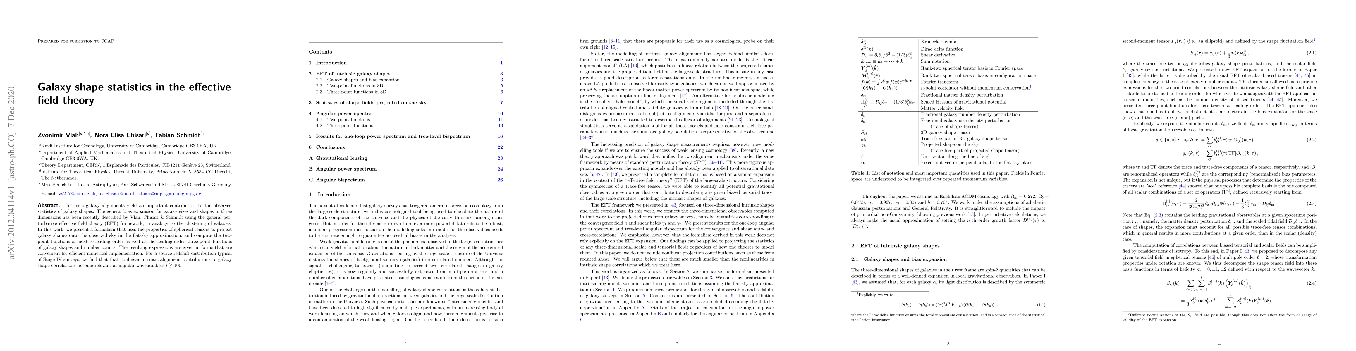 Intrinsic galaxy alignments yield an important contribution to the observed statistics of galaxy shapes. The general bias expansion for galaxy sizes and shapes in three dimensions has been recently described by Vlah, Chisari \& Schmidt using the general perturbative effective field theory (EFT) framework, in analogy to the clustering of galaxies. In this work, we present a formalism that uses the properties of spherical tensors to project galaxy shapes onto the observed sky in the flat-sky approximation and compute the two-point functions at next-to-leading order as well as the leading-order three-point functions of galaxy shapes and number counts. The resulting expressions are given in forms that are convenient for efficient numerical implementation. For a source redshift distribution typical of Stage IV surveys, we find that that nonlinear intrinsic alignment contributions to galaxy shape correlations become relevant at angular wavenumbers $l \gtrsim 100$.