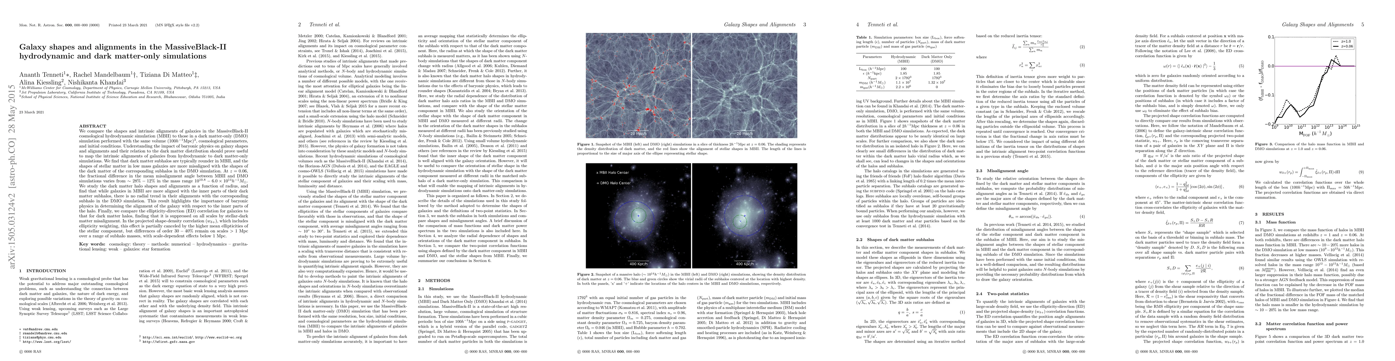 This study compares galaxy shapes and alignments in the MassiveBlack-II hydrodynamic simulation to those in a dark matter-only simulation, finding that baryonic physics significantly affects galaxy shapes and their alignment with dark matter subhalos. The results highlight the importance of these effects in mapping intrinsic alignments from hydrodynamic to dark matter-only simulations.