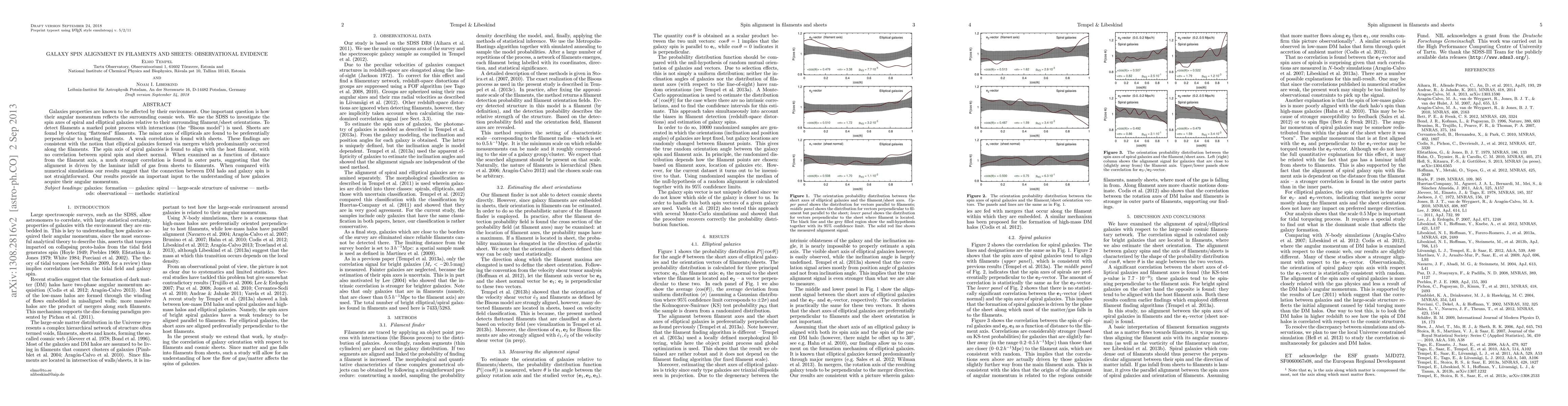 This study uses the SDSS to analyze the alignment of spiral and elliptical galaxy spins with their surrounding cosmic filaments and sheets, finding that elliptical galaxies' minor axes align perpendicularly to filaments, while spiral galaxies' spins align with filaments, suggesting different formation mechanisms and complex relationships between dark matter halos and galaxy angular momentum.