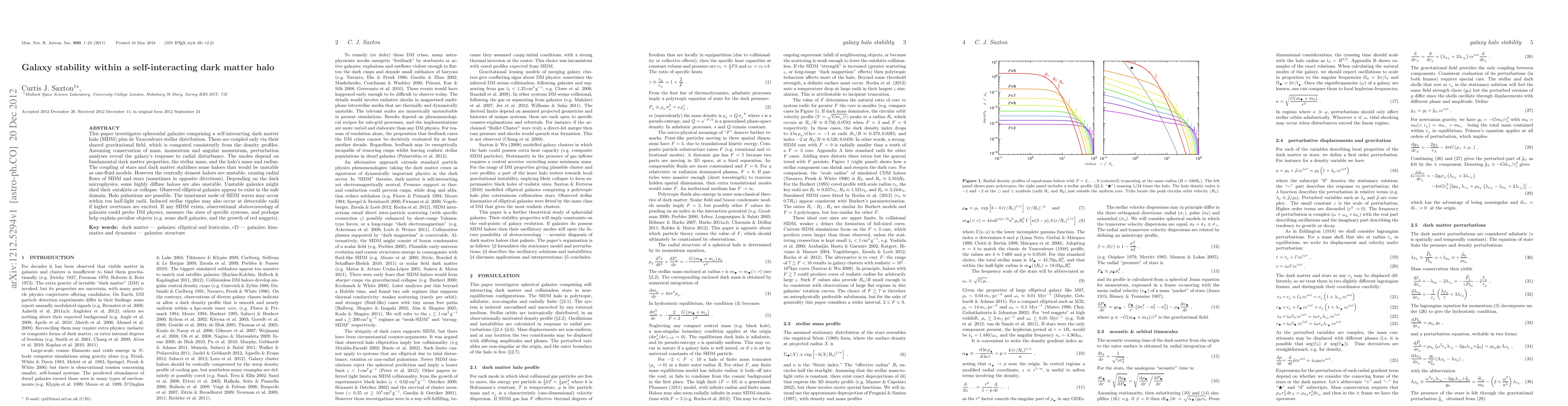 This paper investigates spheroidal galaxies comprising a self-interacting dark matter halo (SIDM) plus de Vaucouleurs stellar distribution. These are coupled only via their shared gravitational field, which is computed consistently from the density profiles. Assuming conservation of mass, momentum and angular momentum, perturbation analyses reveal the galaxy's response to radial disturbance. The modes depend on fundamental dark matter properties, the stellar mass, and the halo's mass and radius. The coupling of stars and dark matter stabilises some haloes that would be unstable as one-fluid models. However the centrally densest haloes are unstable, causing radial flows of SIDM and stars (sometimes in opposite directions). Depending on the dark microphysics, some highly diffuse haloes are also unstable. Unstable galaxies might shed their outskirts or collapse. Observed elliptical galaxies appear to exist in the safe domain. Halo pulsations are possible. The innermost node of SIDM waves may occur within ten half-light radii. Induced stellar ripples may also occur at detectable radii if higher overtones are excited. If any SIDM exists, observational skotoseismology of galaxies could probe DM physics, measure the sizes of specific systems, and perhaps help explain peculiar objects (e.g. some shell galaxies, and the growth of red nuggets).