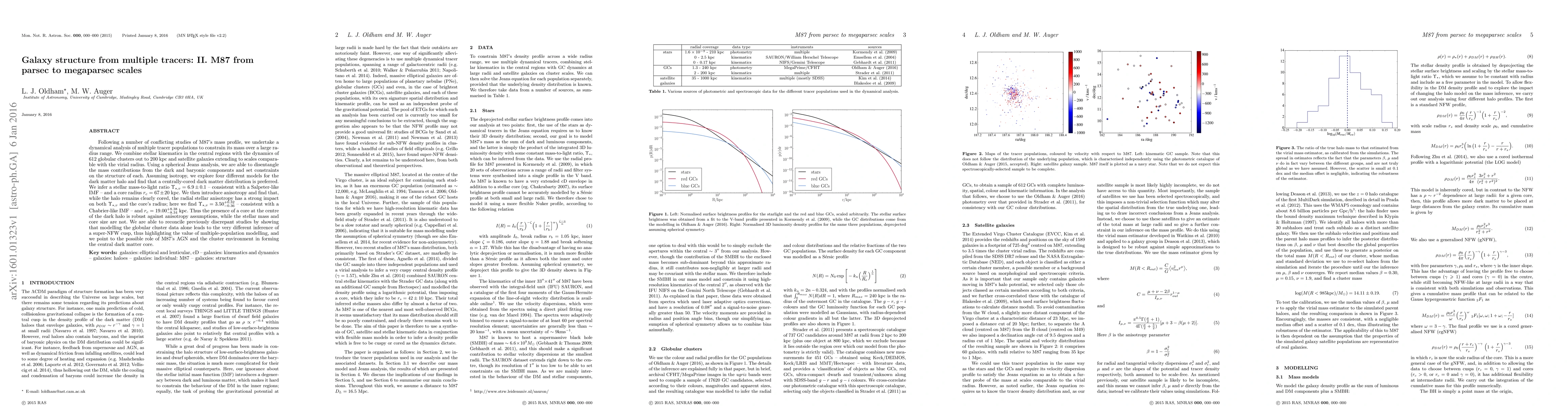 Following a number of conflicting studies of M87's mass profile, we undertake a dynamical analysis of multiple tracer populations to constrain its mass over a large radius range. We combine stellar kinematics in the central regions with the dynamics of 612 globular clusters out to 200 kpc and satellite galaxies extending to scales comparable with the virial radius. Using a spherical Jeans analysis, we are able to disentangle the mass contributions from the dark and baryonic components and set constraints on the structure of each. Assuming isotropy, we explore four different models for the dark matter halo and find that a centrally-cored dark matter distribution is preferred. We infer a stellar mass-to-light ratio $\Upsilon_{\star,v} = 6.9 \pm 0.1$ -- consistent with a Salpeter-like IMF -- and a core radius $r_c = 67 \pm 20$ kpc. We then introduce anisotropy and find that, while the halo remains clearly cored, the radial stellar anisotropy has a strong impact on both $\Upsilon_{\star,v}$ and the core's radius; here we find $\Upsilon_{\star,v} = 3.50_{-0.36}^{+0.32}$ -- consistent with a Chabrier-like IMF -- and $r_c = 19.00_{-8.34}^{+8.38}$ kpc. Thus the presence of a core at the centre of the dark halo is robust against anisotropy assumptions, while the stellar mass and core size are not. We are able to reconcile previously discrepant studies by showing that modelling the globular cluster data alone leads to the very different inference of a super-NFW cusp, thus highlighting the value of multiple-population modelling, and we point to the possible role of M87's AGN and the cluster environment in forming the central dark matter core.