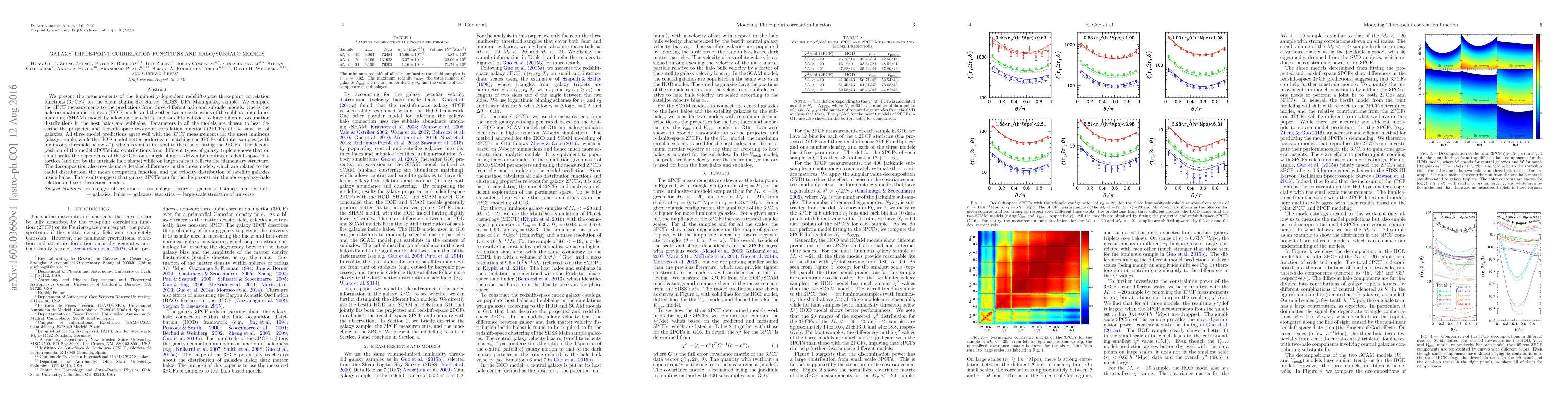 This paper measures the luminosity-dependent three-point correlation functions (3PCFs) for the SDSS DR7 Main galaxy sample and compares them to predictions from three halo/subhalo models. The halo occupation distribution (HOD) model and two subhalo abundance matching (SHAM) extensions best describe the 3PCFs for luminous galaxies, while HOD performs better for fainter galaxies. The study reveals that the 3PCFs' shape dependence on small scales is driven by redshift-space distortion, while large scales reflect filamentary structures.