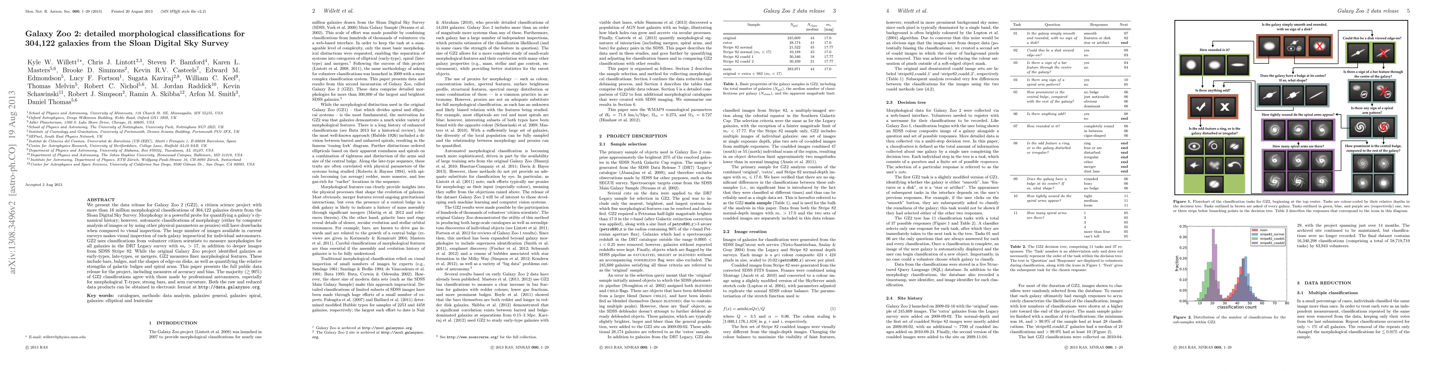 Galaxy Zoo 2 (GZ2) is a citizen science project that provides detailed morphological classifications for 304,122 galaxies from the Sloan Digital Sky Survey, using over 16 million classifications from volunteers. The project measures fine morphological features, including bars, bulges, and spiral arms, and demonstrates high accuracy with over 90% agreement with professional astronomers.