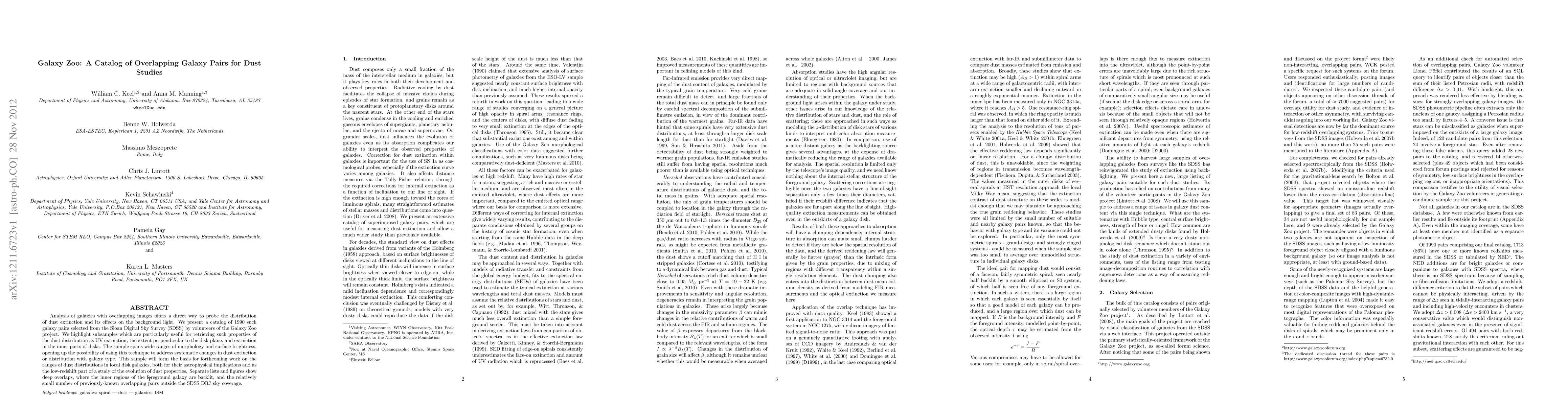 Analysis of galaxies with overlapping images offers a direct way to probe the distribution of dust extinction and its effects on the background light. We present a catalog of 1990 such galaxy pairs selected from the Sloan Digital Sky Survey (SDSS) by volunteers of the Galaxy Zoo project. We highlight subsamples which are particularly useful for retrieving such properties of the dust distribution as UV extinction, the extent perpendicular to the disk plane, and extinction in the inner parts of disks. The sample spans wide ranges of morphology and surface brightness, opening up the possibility of using this technique to address systematic changes in dust extinction or distribution with galaxy type. This sample will form the basis for forthcoming work on the ranges of dust distributions in local disk galaxies, both for their astrophysical implications and as the low-redshift part of a study of the evolution of dust properties. Separate lists and figures show deep overlaps, where the inner regions of the foreground galaxy are backlit, and the relatively small number of previously-known overlapping pairs outside the SDSS DR7 sky coverage.