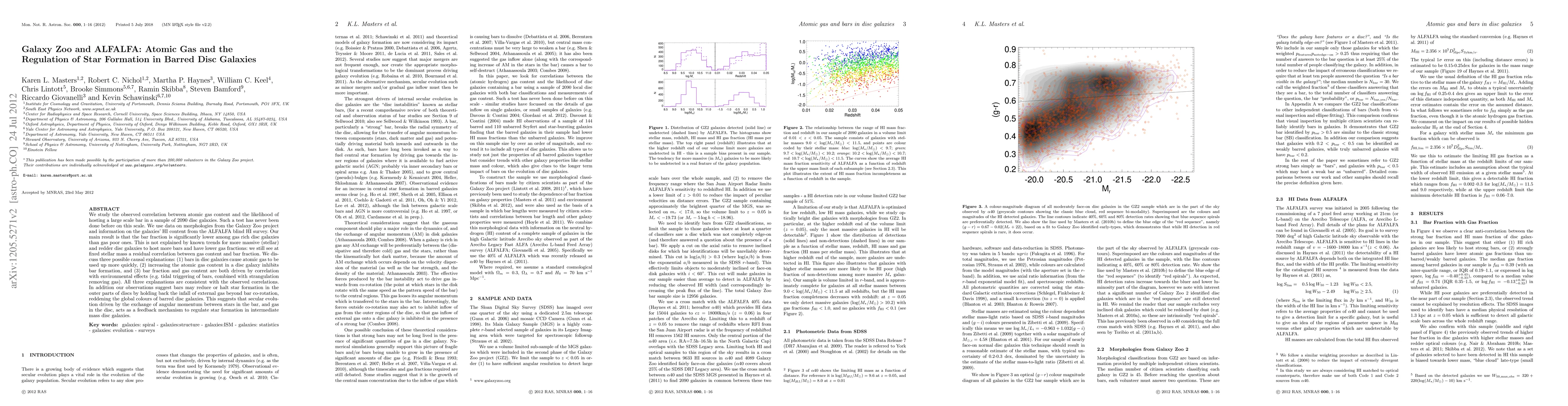 We study the observed correlation between atomic gas content and the likelihood of hosting a large scale bar in a sample of 2090 disc galaxies. Such a test has never been done before on this scale. We use data on morphologies from the Galaxy Zoo project and information on the galaxies' HI content from the ALFALFA blind HI survey. Our main result is that the bar fraction is significantly lower among gas rich disc galaxies than gas poor ones. This is not explained by known trends for more massive (stellar) and redder disc galaxies to host more bars and have lower gas fractions: we still see at fixed stellar mass a residual correlation between gas content and bar fraction. We discuss three possible causal explanations: (1) bars in disc galaxies cause atomic gas to be used up more quickly, (2) increasing the atomic gas content in a disc galaxy inhibits bar formation, and (3) bar fraction and gas content are both driven by correlation with environmental effects (e.g. tidal triggering of bars, combined with strangulation removing gas). All three explanations are consistent with the observed correlations. In addition our observations suggest bars may reduce or halt star formation in the outer parts of discs by holding back the infall of external gas beyond bar co-rotation, reddening the global colours of barred disc galaxies. This suggests that secular evolution driven by the exchange of angular momentum between stars in the bar, and gas in the disc, acts as a feedback mechanism to regulate star formation in intermediate mass disc galaxies.