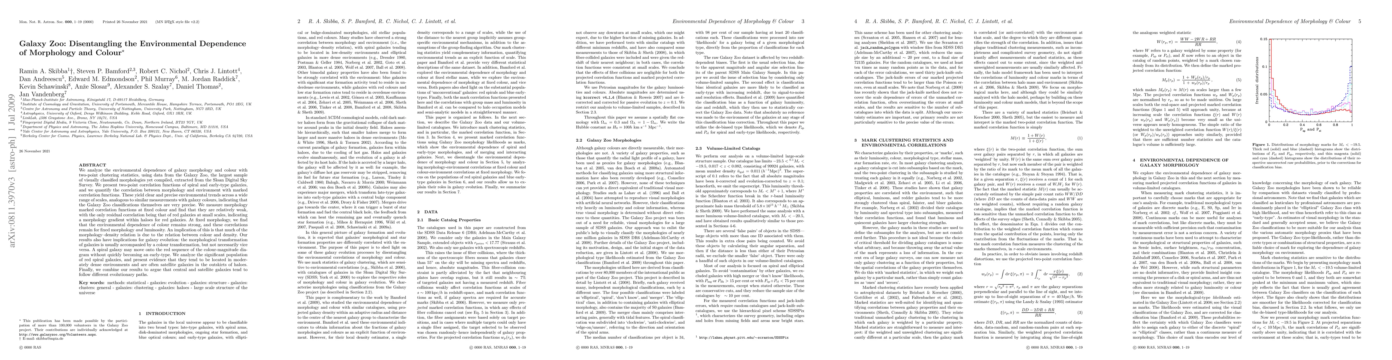 This paper investigates the environmental dependence of galaxy morphology and colour using Galaxy Zoo data, revealing strong correlations between colour and environment but weaker correlations between morphology and environment. It finds that morphological transformations often accompany colour changes, but not vice versa, suggesting different evolutionary paths for central and satellite galaxies.