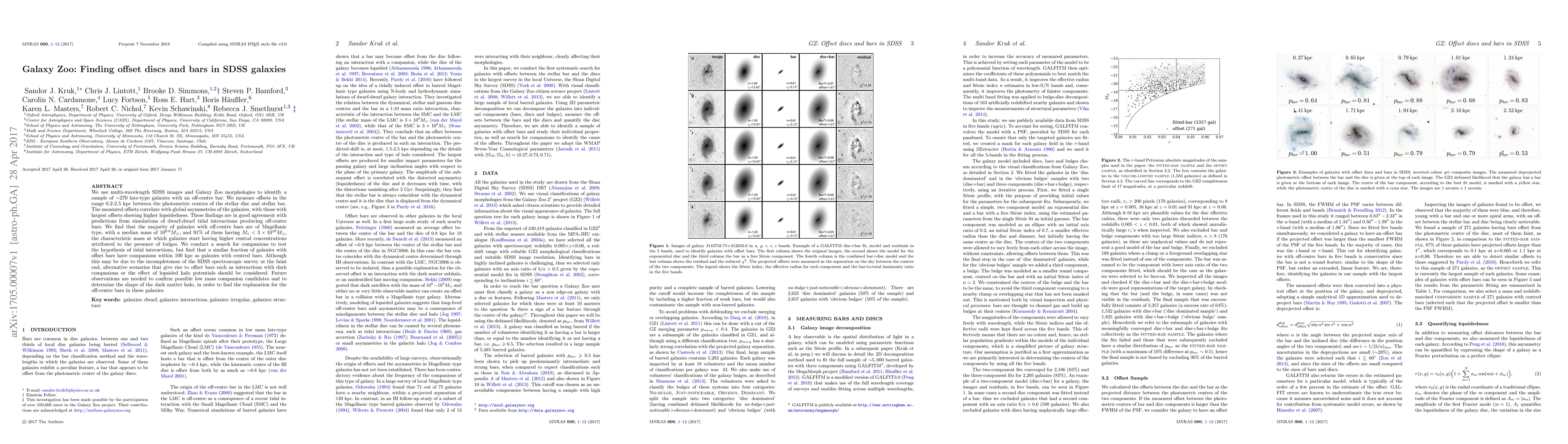 Researchers used Galaxy Zoo to identify 270 late-type galaxies with off-center bars, finding a correlation between bar offsets and global asymmetries. They suggest tidal interactions and dark companions may be responsible for the observed phenomenon.