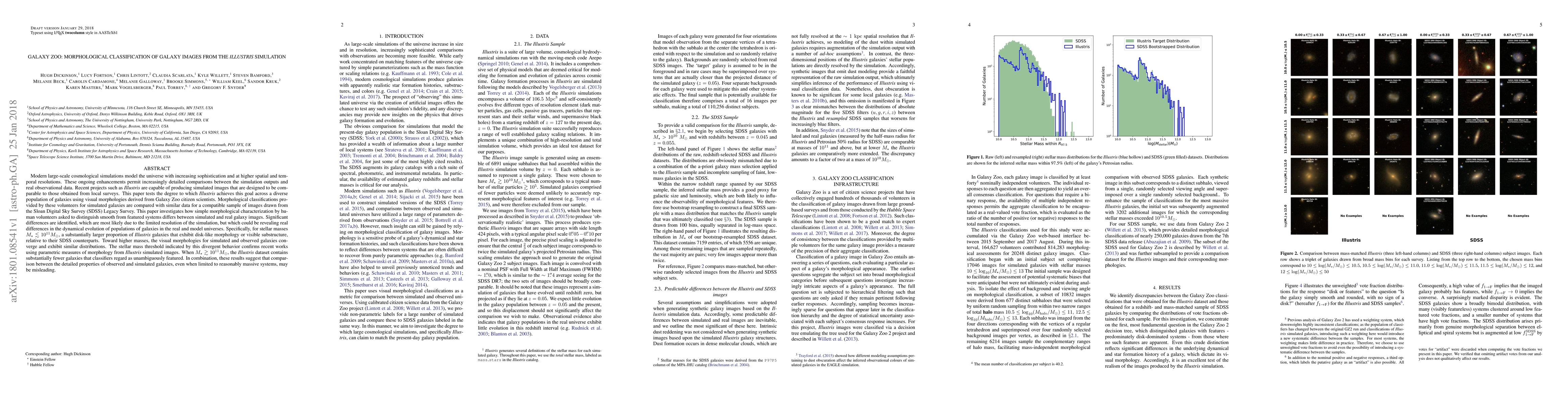 This paper compares morphological classifications of galaxies from the Illustris simulation with those from real SDSS data, using classifications by Galaxy Zoo volunteers. It finds that for lower stellar masses, Illustris galaxies show more disk-like features and substructures compared to SDSS galaxies, suggesting potential discrepancies in the dynamical evolution of galaxies in the simulation versus the real universe.