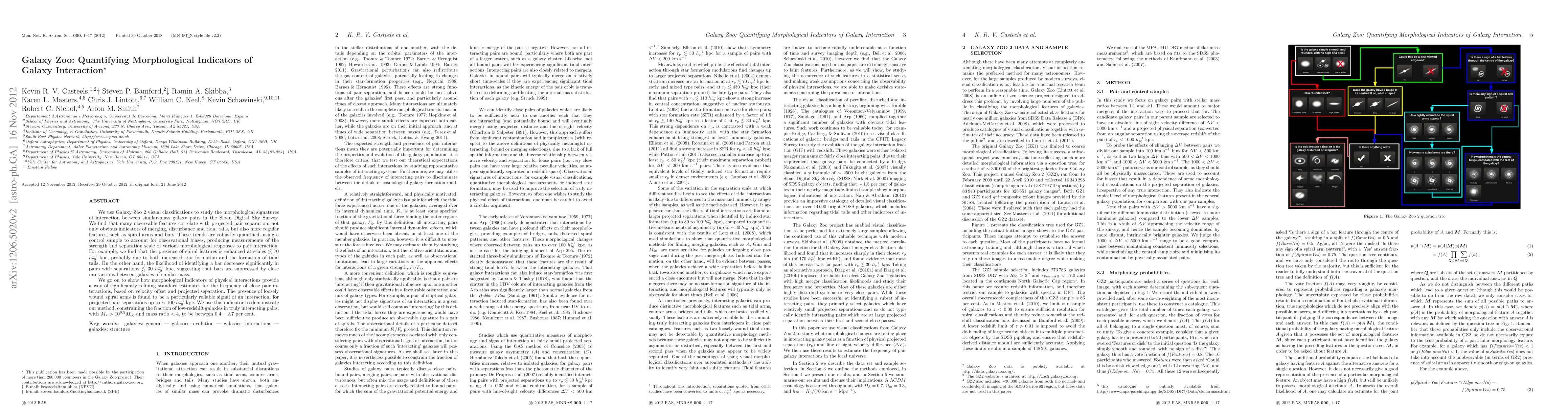 This paper uses Galaxy Zoo 2 classifications to quantify morphological signs of interaction between similar-mass galaxy pairs, finding that features like spiral arms and bars correlate with pair separation. The study refines estimates of interaction frequency, showing that loosely wound spiral arms are a reliable indicator of interaction up to ~100 h^-1 kpc.