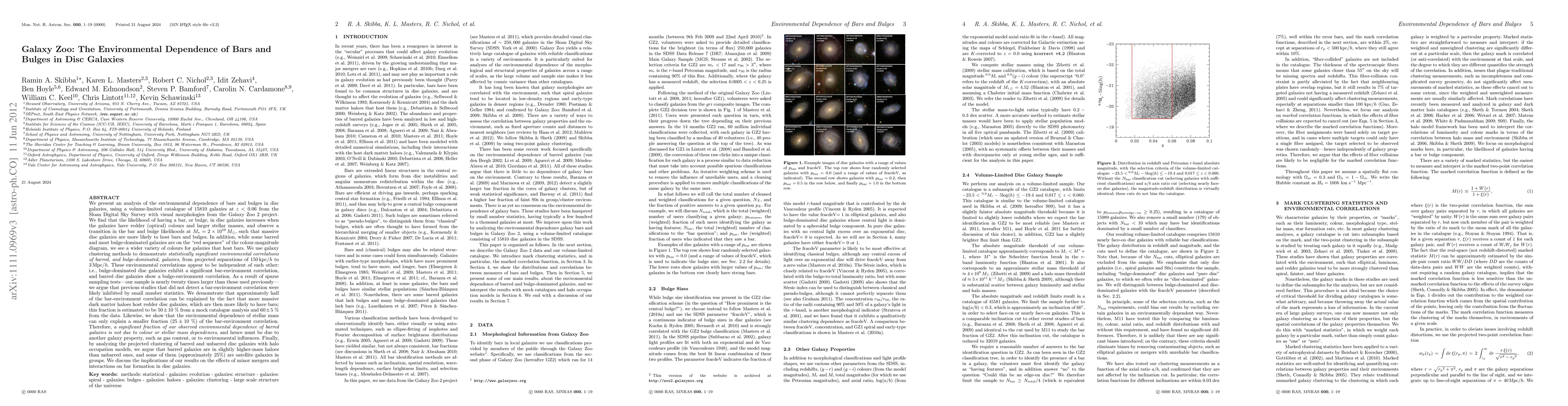 This study analyzes the environmental dependence of bars and bulges in disc galaxies using a large sample from the Sloan Digital Sky Survey and Galaxy Zoo 2. It finds that bars and bulges are more likely in redder, more massive galaxies, and shows significant environmental correlations independent of each other. The study concludes that while stellar mass and colour influence bar formation, a significant portion remains unexplained, suggesting other galaxy properties may play a role.
