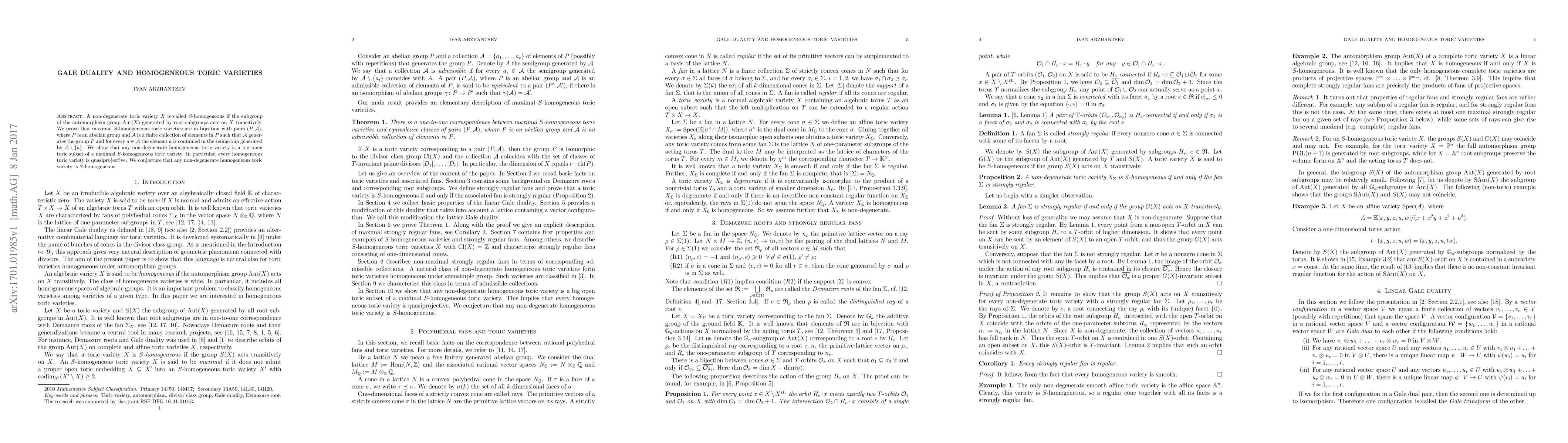 This paper establishes a bijection between maximal $S$-homogeneous toric varieties and pairs consisting of an abelian group $P$ and a generating finite subset $\mathcal{A}$ within $P$ satisfying specific semigroup conditions. It also proves that any homogeneous toric variety is quasiprojective and conjectures that all homogeneous toric varieties are $S$-homogeneous.