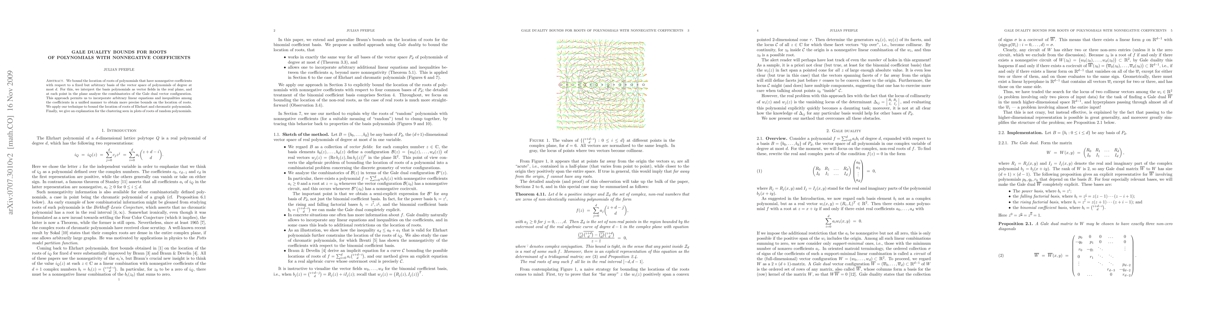 This paper develops Gale duality bounds for roots of polynomials with nonnegative coefficients, employing vector field interpretations and combinatorial analysis to achieve more precise root location estimates, and applies these techniques to Ehrhart and chromatic polynomials, explaining observed root clustering in random polynomials.