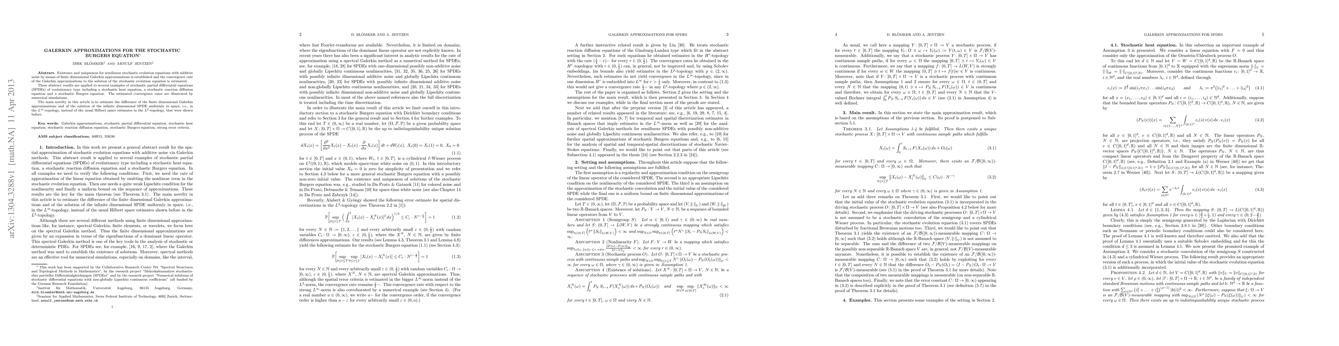 Existence and uniqueness for semilinear stochastic evolution equations with additive noise by means of finite dimensional Galerkin approximations is established and the convergence rate of the Galerkin approximations to the solution of the stochastic evolution equation is estimated. These abstract results are applied to several examples of stochastic partial differential equations (SPDEs) of evolutionary type including a stochastic heat equation, a stochastic reaction diffusion equation and a stochastic Burgers equation. The estimated convergence rates are illustrated by numerical simulations. The main novelty in this article is to estimate the difference of the finite dimensional Galerkin approximations and of the solution of the infinite dimensional SPDE uniformly in space, i.e., in the L^{\infty}-topology, instead of the usual Hilbert space estimates in the L^2-topology, that were shown before.