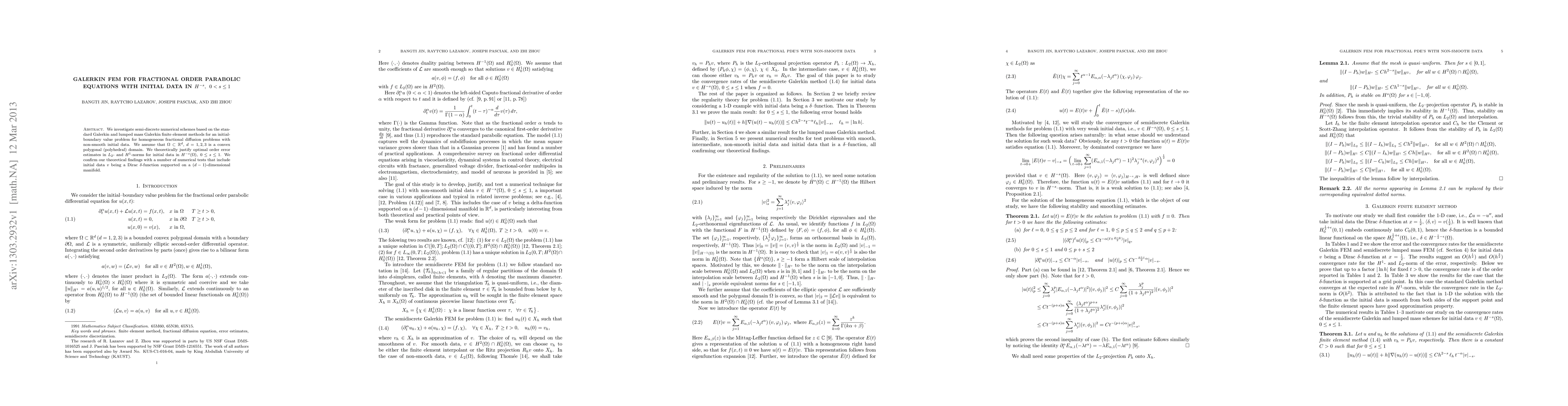 Researchers developed finite element methods for solving fractional order parabolic equations with initial data in H^{-s} spaces, achieving optimal error estimates in L_2 and H^1 norms.