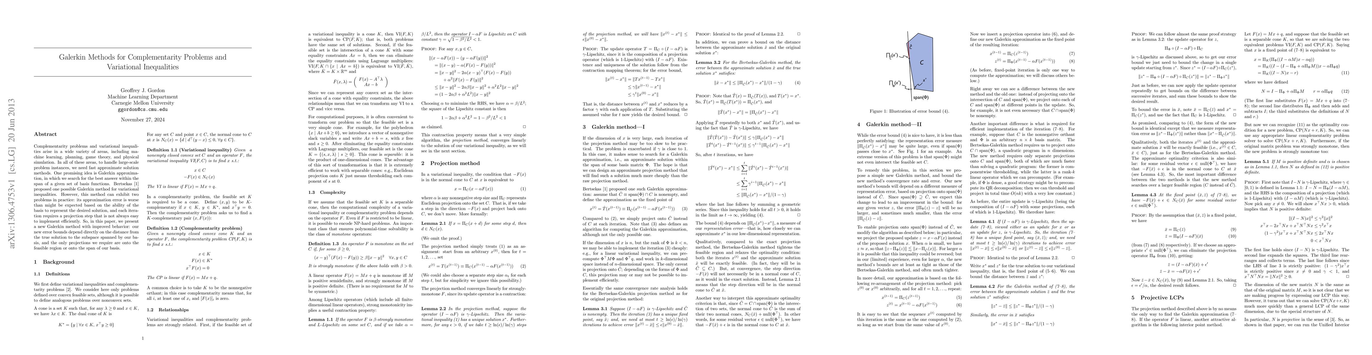 This paper introduces a new Galerkin method for solving complementarity problems and variational inequalities, addressing issues with existing methods, such as poor approximation error and inefficient projection steps. The proposed method provides better error bounds and simplifies projection requirements.