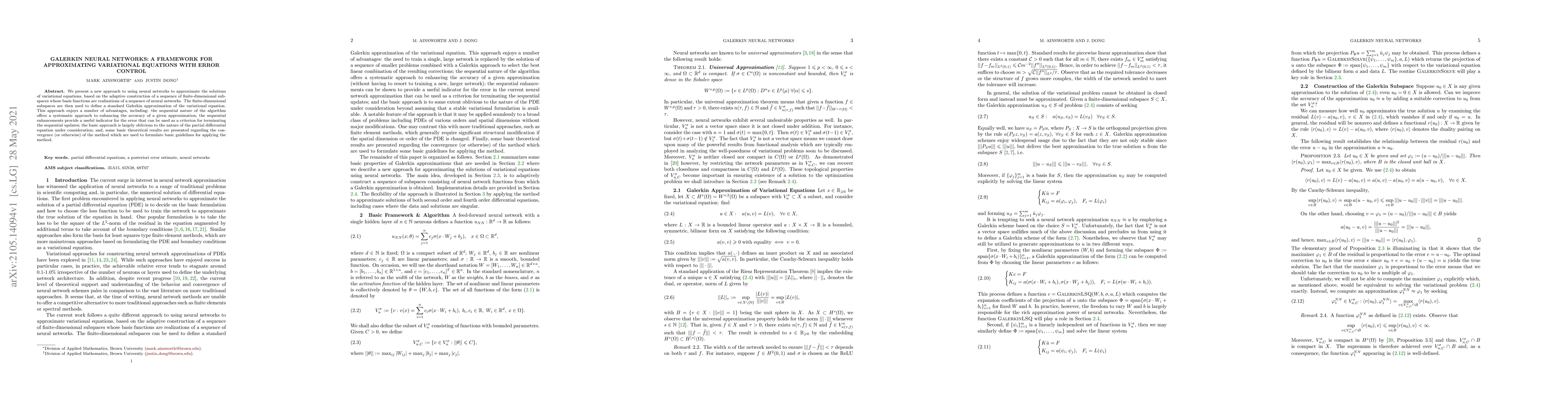 This paper introduces Galerkin Neural Networks, a method for approximating variational equations using adaptively constructed neural network-based finite-dimensional subspaces. The approach allows for systematic accuracy enhancement and provides error control, making it versatile and theoretically grounded.