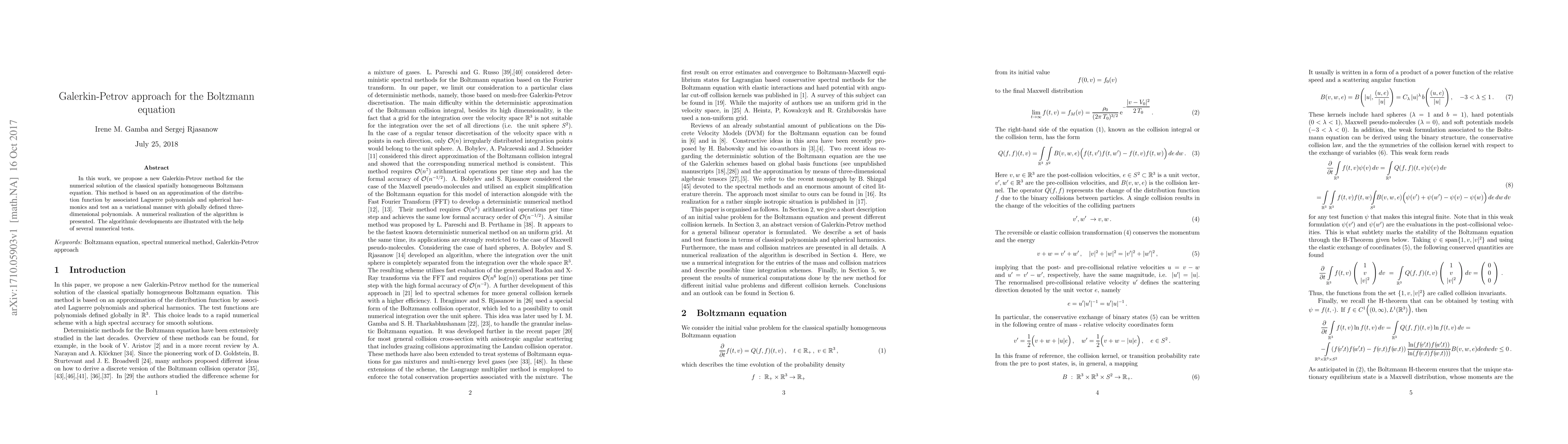 Researchers propose a new numerical method for solving the Boltzmann equation using Laguerre polynomials and spherical harmonics, with promising results in a variational test.