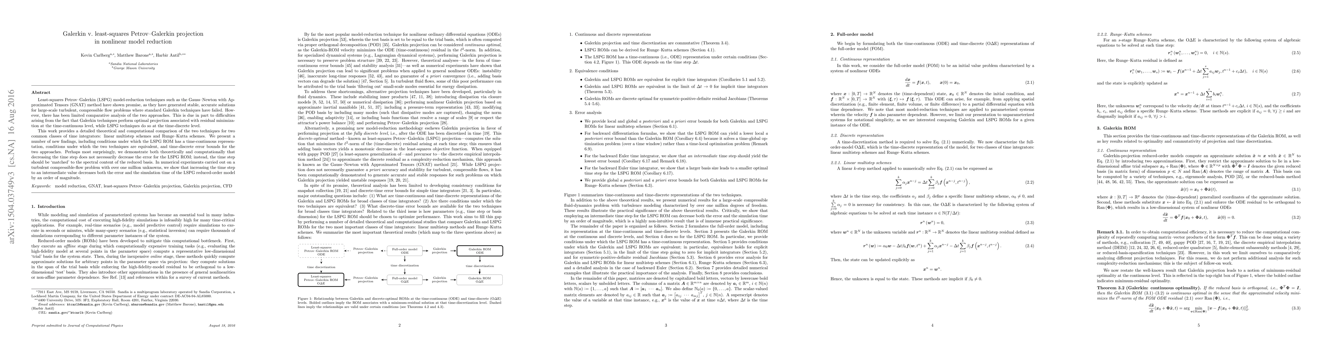 This paper compares Galerkin and least-squares Petrov-Galerkin (LSPG) model-reduction techniques, finding that LSPG methods like GNAT are more stable for turbulent flows. It reveals conditions for equivalence and error bounds, showing that the LSPG error does not always decrease with smaller time steps, but rather benefits from a "matched" time step to the reduced basis.