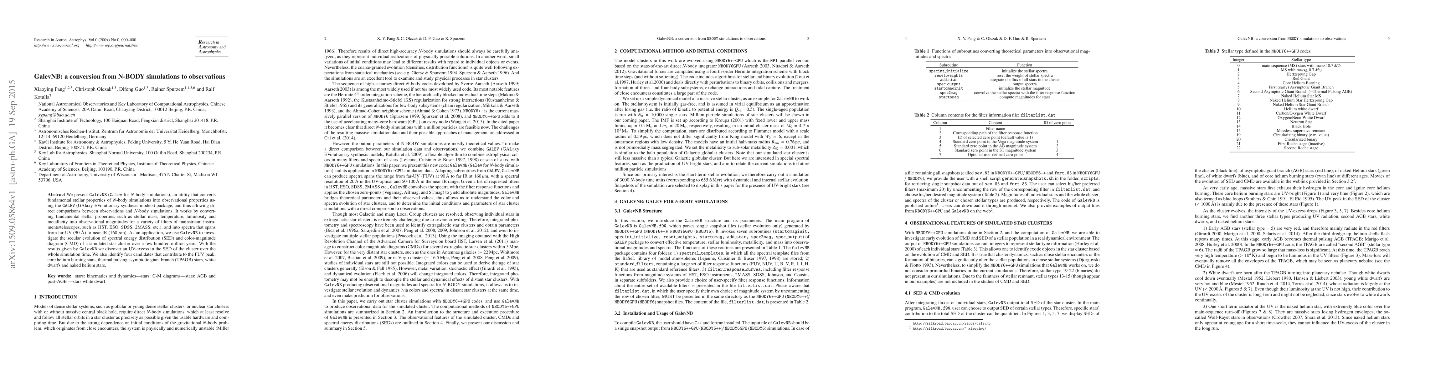 Researchers developed GalevNB, a tool that converts N-body simulation data into observable properties, revealing an unexpected UV-excess in the spectral energy distribution of simulated stars over time.