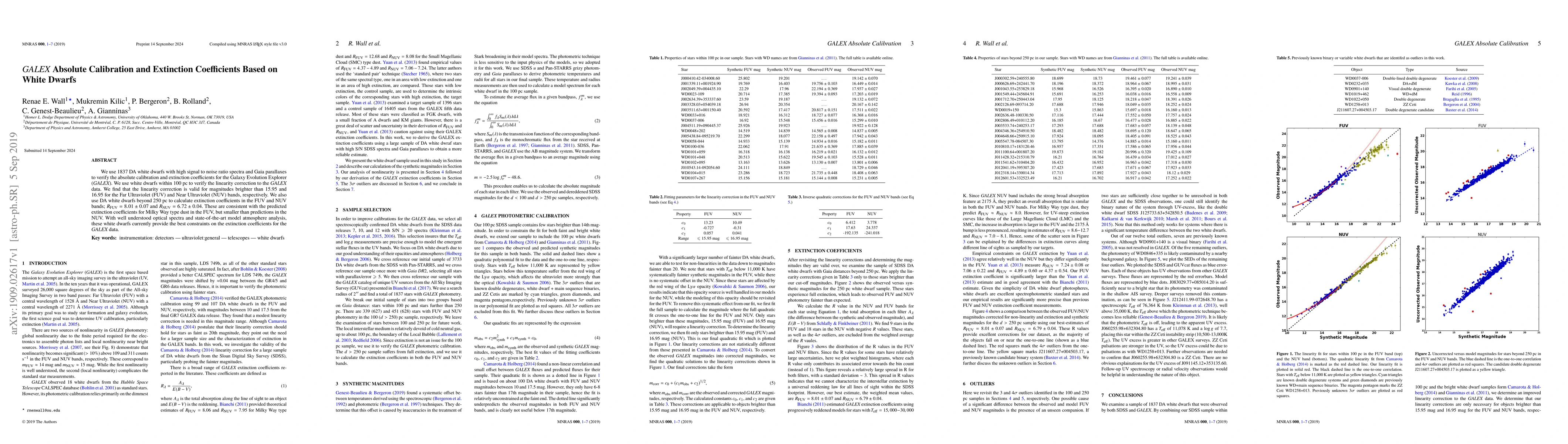 We use 1837 DA white dwarfs with high signal to noise ratio spectra and Gaia parallaxes to verify the absolute calibration and extinction coefficients for the Galaxy Evolution Explorer (GALEX). We use white dwarfs within 100 pc to verify the linearity correction to the GALEX data. We find that the linearity correction is valid for magnitudes brighter than 15.95 and 16.95 for the Far Ultraviolet (FUV) and Near Ultraviolet (NUV) bands, respectively. We also use DA white dwarfs beyond 250 pc to calculate extinction coefficients in the FUV and NUV bands; $R_{\rm FUV}=8.01 \pm 0.07$ and $R_{\rm NUV}=6.72 \pm 0.04$. These are consistent with the predicted extinction coefficients for Milky Way type dust in the FUV, but smaller than predictions in the NUV. With well understood optical spectra and state-of-the-art model atmosphere analysis, these white dwarfs currently provide the best constraints on the extinction coefficients for the GALEX data.