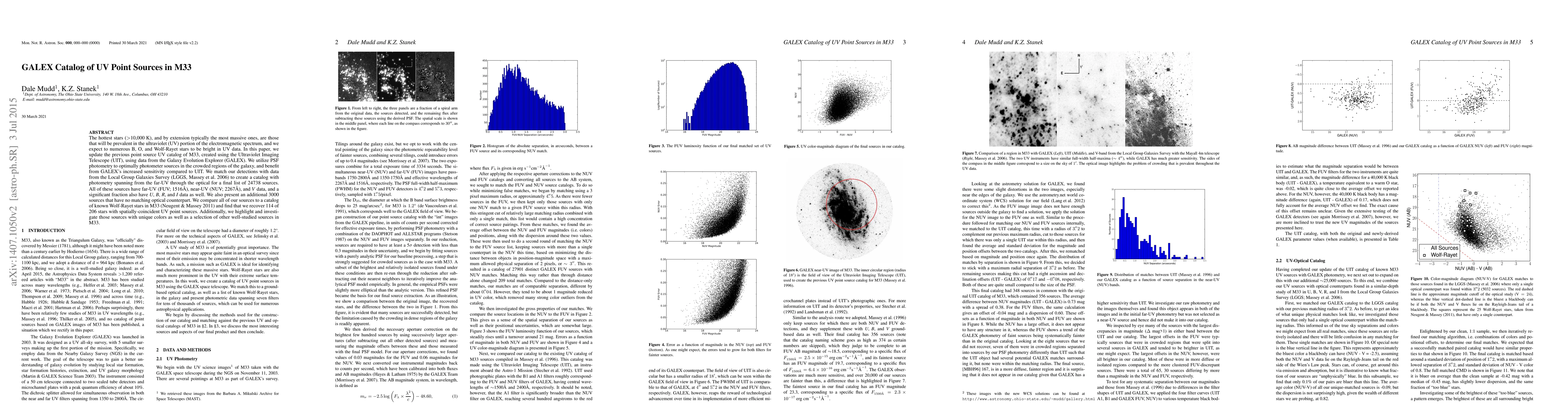 This paper updates the ultraviolet (UV) catalog of M33 using data from the Galaxy Evolution Explorer (GALEX), employing PSF photometry to improve crowded region handling. The resulting catalog includes 24,738 UV point sources with photometry from far-UV to optical, and it identifies 114 of 206 known Wolf-Rayet stars in M33.